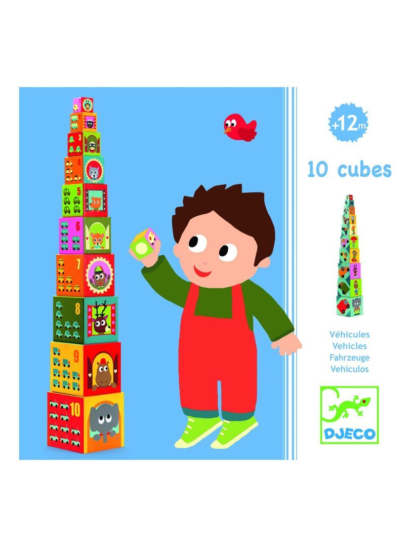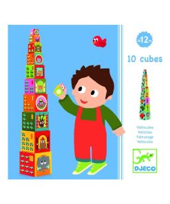 10 Cubes en carton recyclé, bords doux à empiler ou à encastrer. Chamboule tout ou imagier, des cubes multi fonction que les bébés dès 9 mois apprécieront tout particulièrement pour leur couleurs vives et les motifs rigolo. ref DJ08508- Nouveauté Mai 2013 A partir de 9 mois