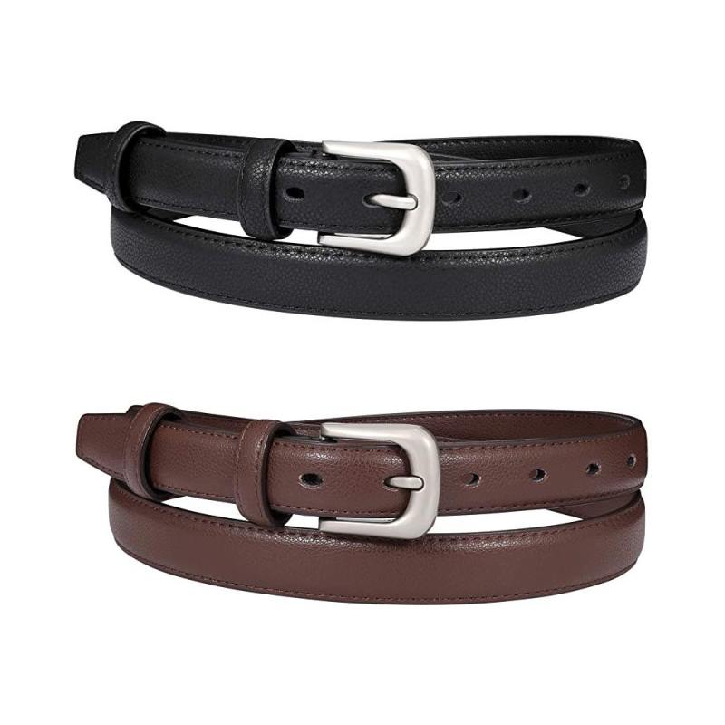 2 Pack Women Leather Belt Waist Skinny Dress Belts Solid Pin Buckle Belt for Jeans Pants