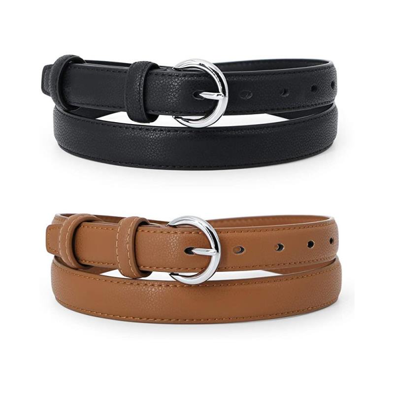 2 Pack Women Leather Belt Waist Skinny Dress Belts Solid Pin Buckle Belt for Jeans Pants