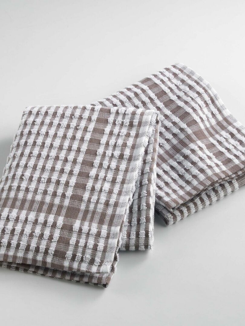Lot de 2 torchons Dimensions: 50x70cm Composition: 100% coton eponge Lavage en machine à 40°C séparément. Coloris disponible : jaune, taupe, noir, anthracite, prune, rouge, anis