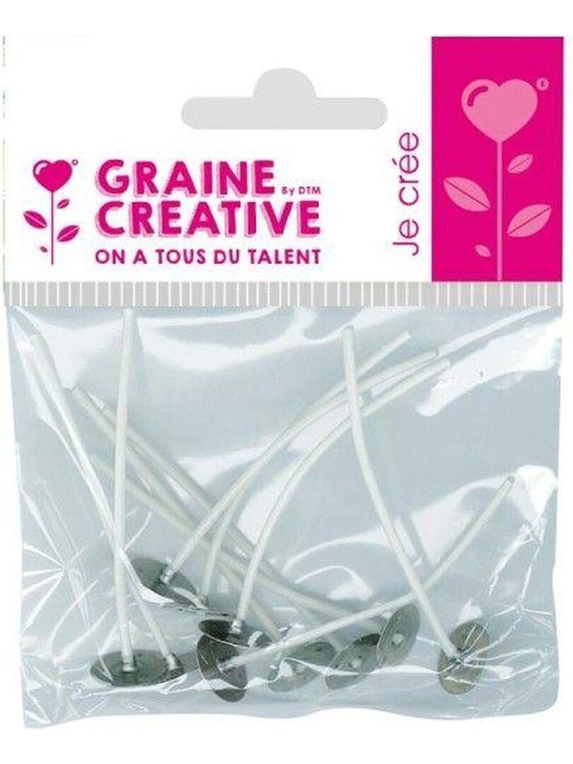 Voici 20 mèches à bougie de taille standard (7 cm) avec supports (diamètre 1,5 cm) pour confectionner vos bougies vous-même.