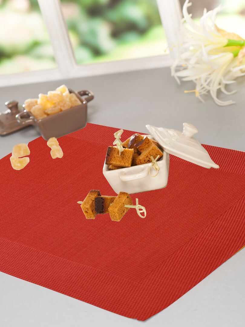 Apportez la touche déco à votre table avec le set de table 45×30 cm de la collection Doran coloris rouge. A la fois pratique et facile d’entretien il trouva facilement sa place sur votre table.