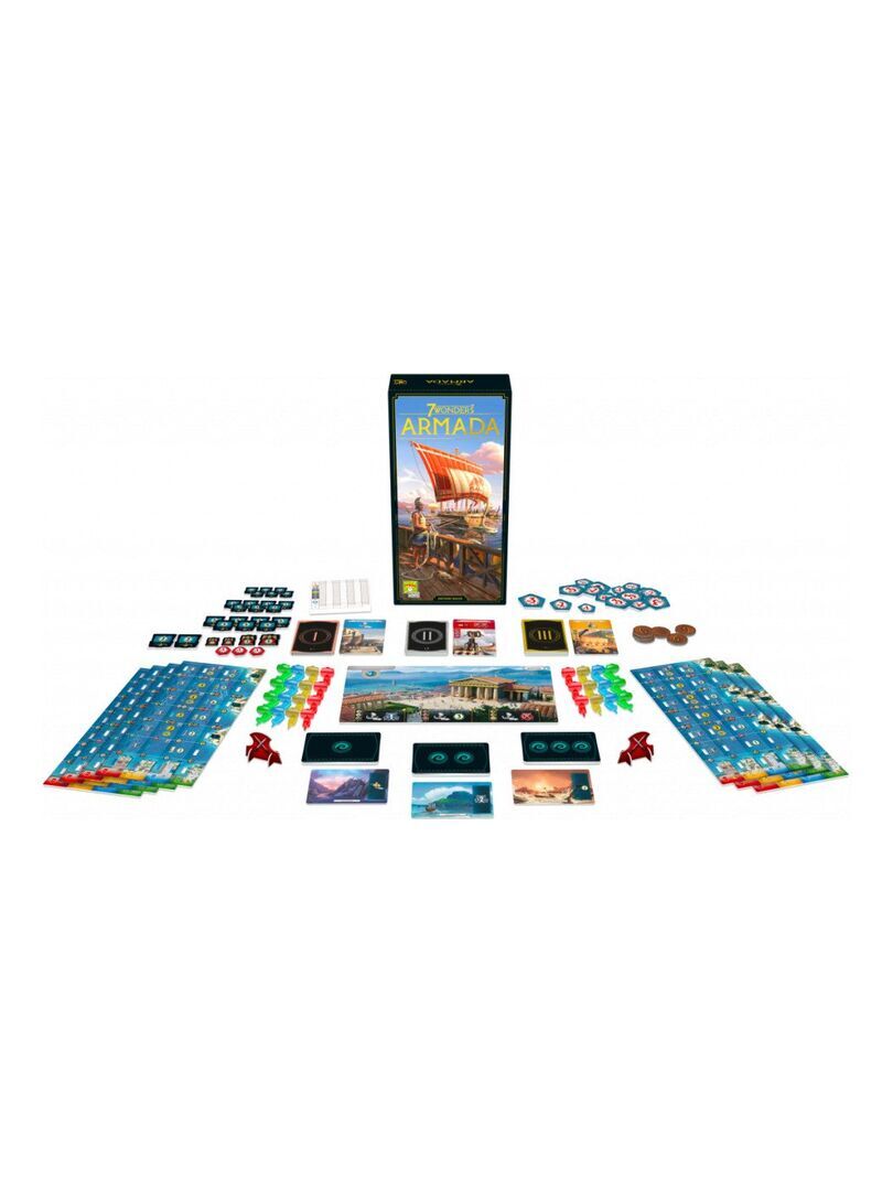 L’extension Armada pour 7 Wonders offre un nouveau matériel aux joueurs, pour développer leurs jeux, les opportunités commerciales, influences et conquête par delà les mers ! Découvrez les richesses des différentes îles méditerranéennes : ressources, puissance militaire et bien d’autres récompenses vous y attendent ! Contient : 8 plateaux Chantier Naval, 32 figurines Navire, 24 cartes Armada, 2 jetons Débarquement, 6 pièces, 4 aides de jeu, 1 carnet de scores, 48 jetons Conflit Maritime, 6 jetons Conflit Terrestre, 1 livret de règles. A partir de 12 ans Attention ! Ne convient pas aux enfants de moins de 36 mois (3 ans)
