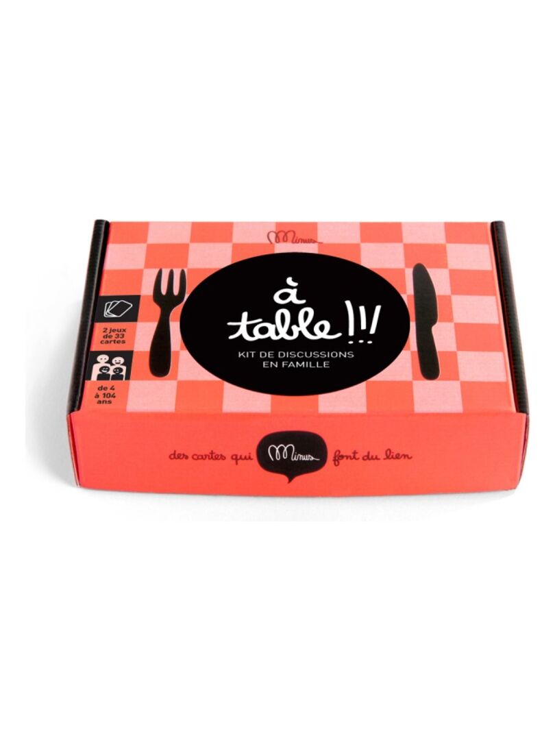 Pour éviter la cacophonie à table. Chacun leur tour, enfants et parents piochent une carte «discussion». Routine du quotidien, débats philosophiques, sujets incongrus, tout y passe ! Si le sujet n’inspire pas on pioche une carte «Gage». Et là plus moyen de se débiner… 2 jeux de 33 cartes. Minus Editions c’est quoi ? C’est de l’envie de favoriser l’échange entre les enfants et les adultes qu’est née l’idée de Minus ! Des objets ludiques et futés qu’on embarque partout pour profiter de ces instants furtifs et échanger avec nos enfants. Un souci en tête : capter l’attention des enfants pour éveiller leur curiosité et accrocher l’adulte pour qu’il donne volontiers de son temps si précieux ! Quel que soit le sujet, l’amour, l’art, la politique, vous trouverez toujours dans Minus un ton décalé et drôle, parce qu’avec une dose d’humour, tout passe. Alors, chez le médecin, au resto, dans le train, nous, on ne sort plus nos téléphones, on dégaine nos Minus ! On apprend, on discute, on joue … toujours avec humour et surtout sans tabou ! Tous les produits sont imaginés dans le nord de la France, à Lille, et fabriqués en France à partir de papier labellisé FSC et d’encres végétales. Les commandes sont préparées par un ESAT (atelier qui soutient et donne du travail aux personnes handicapées).
