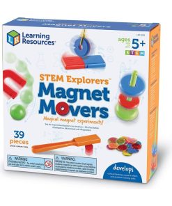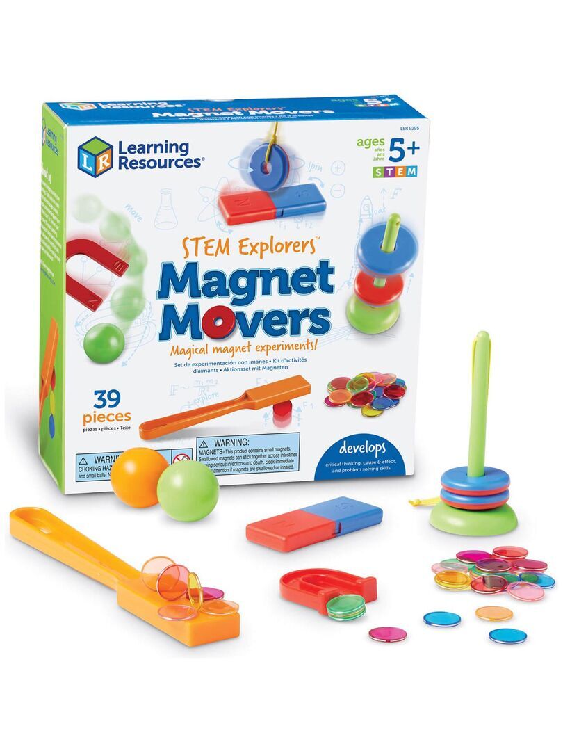 Explorateurs STEM : Aimants de Learning Resources. Les aimants Explorateurs STEM permettent d’acquérir des compétences élémentaires de physique grâce à des expériences amusantes. Répondez à des questions importantes sur le magnétisme à l’aide d’accessoires éprouvés et d’expériences très amusantes qui vont de l’apprentissage des concepts de base à des problèmes pratiques thématiques, en passant par des jeux très absorbants. Comprend une baguette aimantée, un mât aimanté, 2 anneaux aimantés, une barre aimantée, 2 billes aimantées, un fer à cheval aimanté, de la ficelle, 30 jetons de couleur et un guide d’activités. À partir de 5 ans. Age minimum : 5 ans