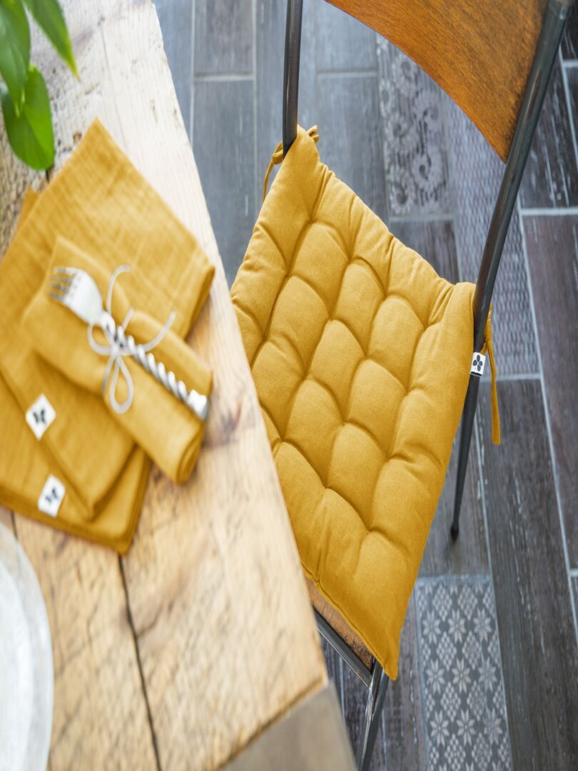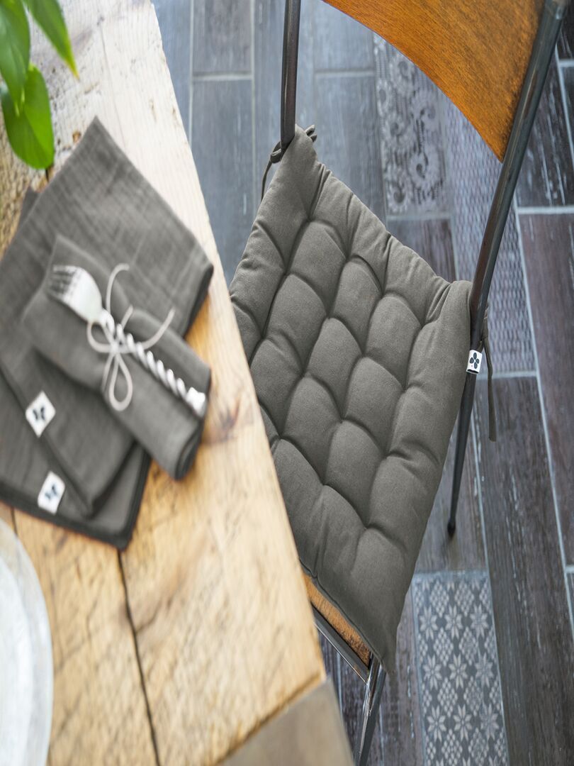 Coussin de chaise Assise matelassée collection kala Cette assise donnera du charme à votre intérieur et exterieur Composition : 100% Coton + filling coton (190 gr/m²) Dimension: +ou- largeur 38 x Longueur 38 cm , epaisseur + ou – 6 cm Finition:Piquage capiton – Nouettes d’attache – Déperlant – Anti-UV Pas de séchage en machine – Pas de repassage entretien a la main Attache avec des ficelles Retrouvez tous les produits assortis de la collection kala