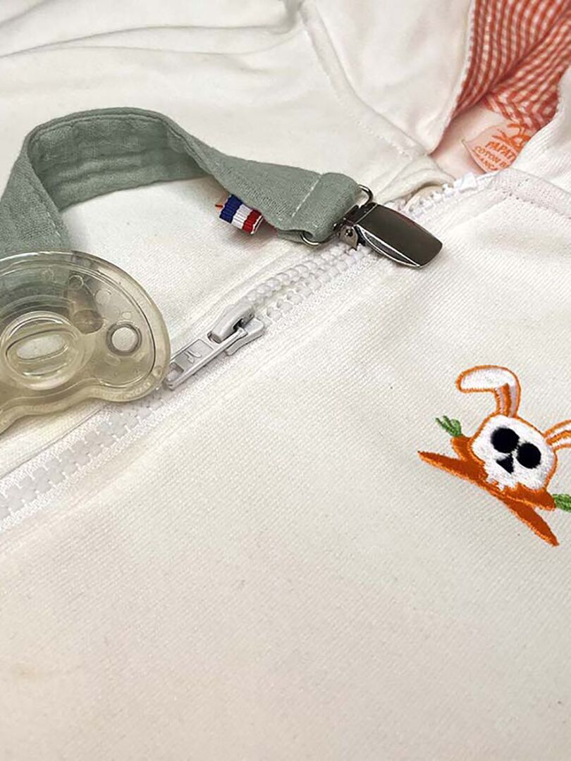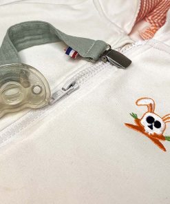 L’attache tétine Teddy est l’accessoire idéal pour que vos enfants ne perdent plus leur tétine et préservent leur bonne humeur ! Teddy saura parfaitement les accompagner lors de leurs premières années de vie et convient aux enfants dès la naissance. Notre attache tétine (ou attache sucette) est en Coton Bio et fabriqué en France. Notre Attache Tétine respecte la législation européenne et la norme Norme NF EN 12586+A1. Les cordons ne dépassent pas 220mm de long !