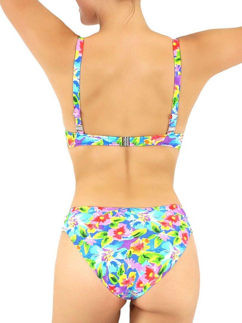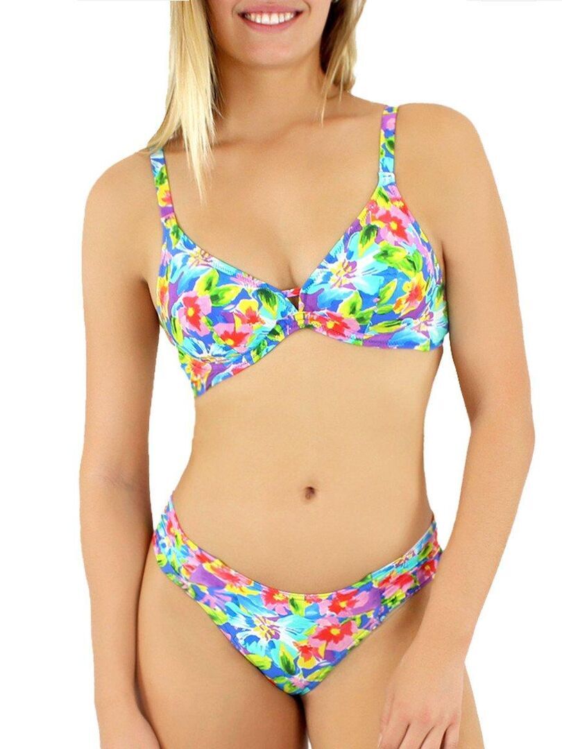 Attention ! Produit gainant : n’hésitez pas à prendre un tour de dos en plus si vous désirez avoir un gainage léger. Perdez une taille immédiatement dés que vous enfilez ce maillot gainant Bas de maillot de bain floral Maddalena : avec sa gaine intégrée invisible, ce maillot de bain est le résultat du véritable savoir faire en terme de modelage de la silhouette. Vous vous sentirez plus à votre aise, les rondeurs disgracieuses seront dissimulées et la poitrine sera mise en valeur. Forte résistance chlore et eau de mer. Lavage à la main conseillé. Composition = Polyamide : 68%, Elasthanne : 32%
