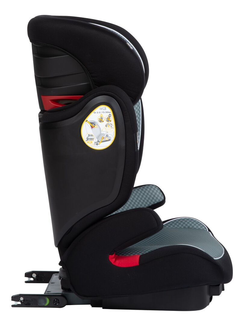 Siège auto Groupe 2/3 Isofix qui évolue avec l’enfant (15-36 kg). Facile à installer: pinces ISOFIX pour une installation rapide et en toute sécurité. Peut également être utilisé en ceinturé. Protection renforcée EPS pour une meilleure absorption des impacts latéraux. Ajustable en hauteur sur 7 positions et en largeur.