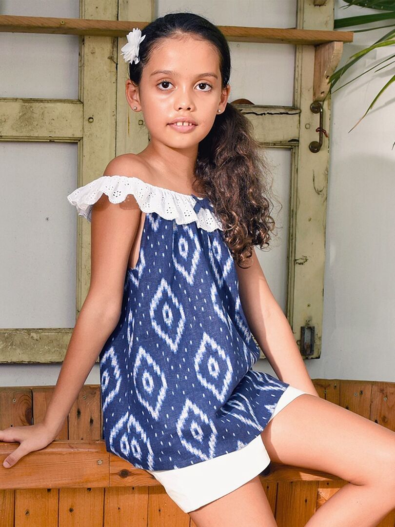 Blouse tie and dye col 2-en-1 AURORE – ‘LA FAUTE A VOLTAIRE’ – Bleu marine