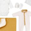 La box est composée d’un collier bébé et de deux bracelets pour adulte en ambre et pierres naturelles. C’est une excellente idée de cadeau pour que bébé soit assorti à ses parents.