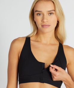 Un modèle de brassière de sport qui assure confort et féminité avec son ouverture zippée à l’avant.