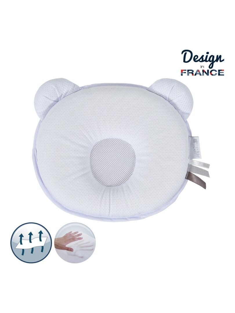 Le coussin P’tit Panda Air+ blanc de Candide aidera bébé à garder une tête bien ronde grâce à sa mousse à mémoire de forme confortable. La tête de bébé est légèrement surélevée. La maille piquée ultra douce du P’tit Panda Air+ blanc permet l’évacuation de la transpiration. Sa maille filet au centre, épouse la forme de la boîte crânienne, tout en laissant l’air circuler pour plus de confort.