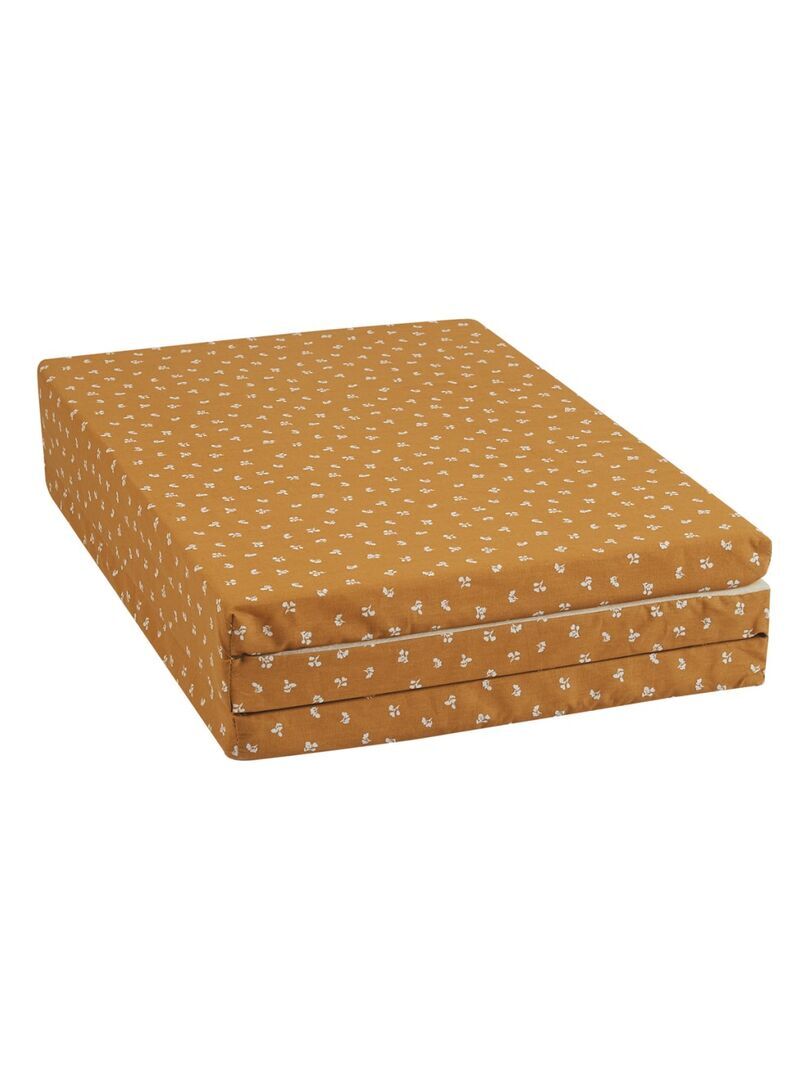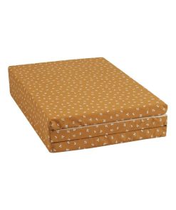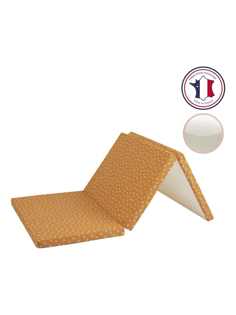 Découvrez ce matelas de voyage bébé, pliant en 3 parties, idéal à transporter partout avec vous. Le matelas pliant permet d’offrir à bébé un sommeil de qualité, en vacances, chez des amis ou de la famille. Vous êtes libre de vous déplacer avec bébé sans sacrifier son confort de sommeil. Vous le saviez ? Jusqu’à 3 mois, bébé dort en moyenne 14 à 18 heures par jour, voilà une raison de bien choisir le matelas de votre enfant même lors de vos déplacements. Le matelas pliant peut tout à fait être utilisé en matelas d’appoint et pourra servir à accueillir les copains. Il peut être positionné dans un lit dur de 60x120cm pour correspondre parfaitement à ses dimensions et garantir la sécurité et le confort de bébé. Le matelas pliant 3 parties de Candide est le bon compromis au matelas habituel de bébé lorsqu’il est en voyage. Pliable, ce matelas bébé nomade se transporte facilement grâce à sa valisette de transport transparente avec poignée. Le matelas est protégé, et ne prend pas de place car il est plié en 3 parties. Confortable, son garnissage en mousse et sa housse 100% coton apportent douceur et confort au moment de s’endormir. Il dispose d’une épaisseur de 4cm avec sa mousse ultra confort d’une densité de 16kg/m3. Pratique, grâce à son dessous en polypropylène, cette matière résistante garantie la longévité de votre matelas. Un critère qui peut être important dans votre choix de matelas bébé, est-il déhoussable ? Avec ce matelas pliant 3 parties Candide la réponse est oui ! Vous pourrez laver la housse régulièrement en machine à 30 degrés pour une hygiène toujours parfaite. Vous allez craquer pour ce joli tissu imprimé coloris camel/fleuri, mixte et très tendance. Il ne vous reste plus qu’à partir en vacances en famille, bien équipé pour le confort de votre bébé. Candide fabrique ce matelas bébé pliant en 3 parties en France, dans le Maine et Loire (49) avec le savoir-faire qui caractérise la marque depuis plus de 40 ans.