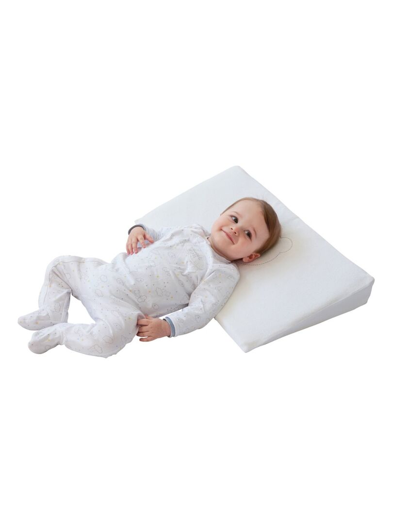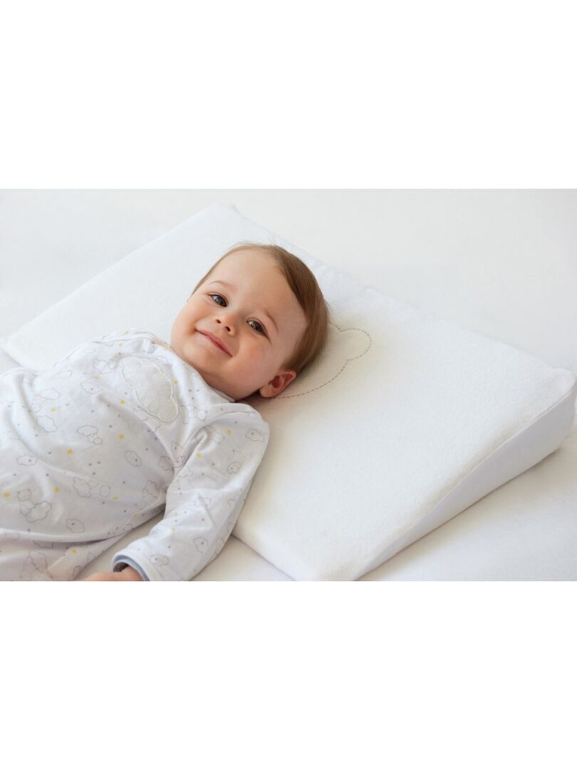 Ce plan incliné à 15° Memory se place entre le drap-housse et le matelas, sous la tête du bébé. Placer la tête de bébé sur le petit ourson, pour une utilisation optimale. La partie supérieure du plan est en mousse à mémoire de forme pour une tête bien ronde.