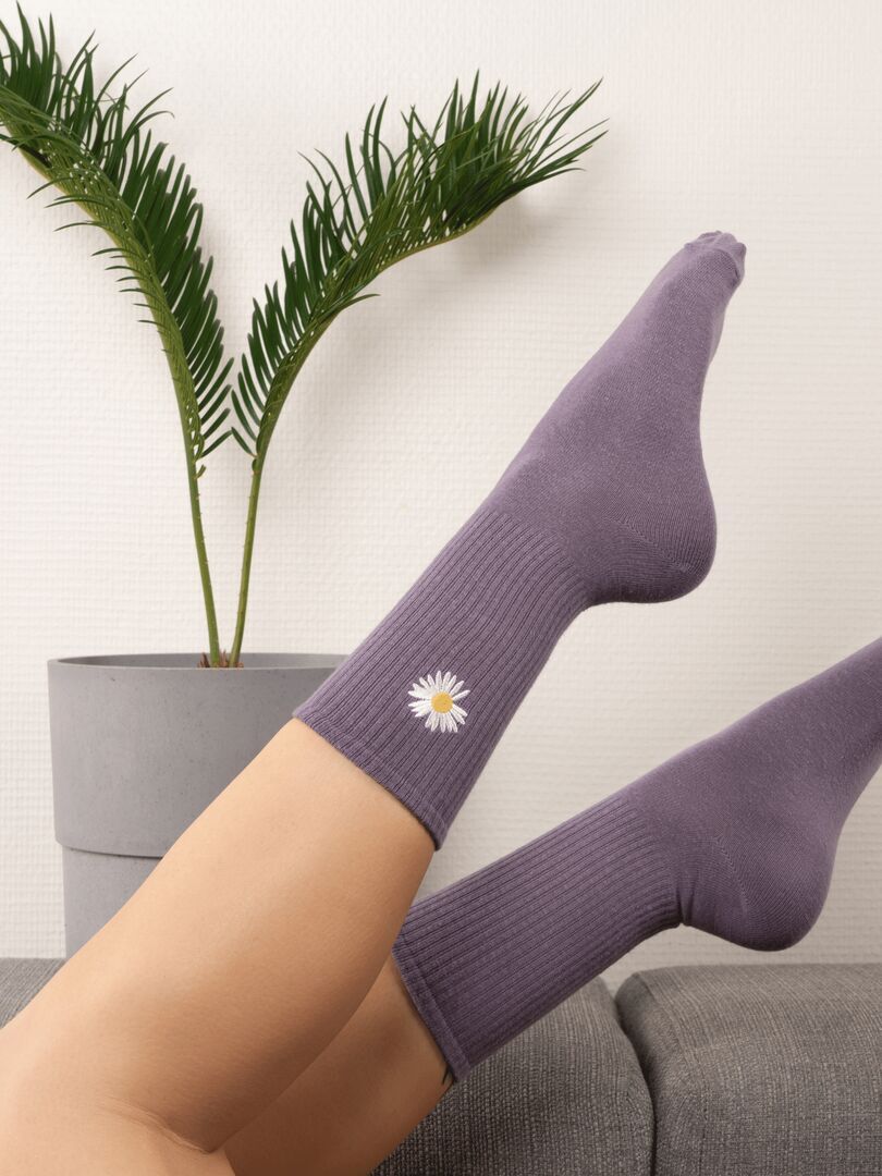 Chaussettes En Coton Fleurs Marguerite- Sockup- 35-43 – Violet