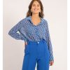 Chemise femme en popeline de coton blanche imprimée de micro motif pastel. Réalisée dans une coupe cintrée cette chemise possède une ganse unie en rappel de l’imprimé qui viens souligner le haut des poignets et les découpes princesse sur le devant de la chemise ainsi que l’intérieur du col.