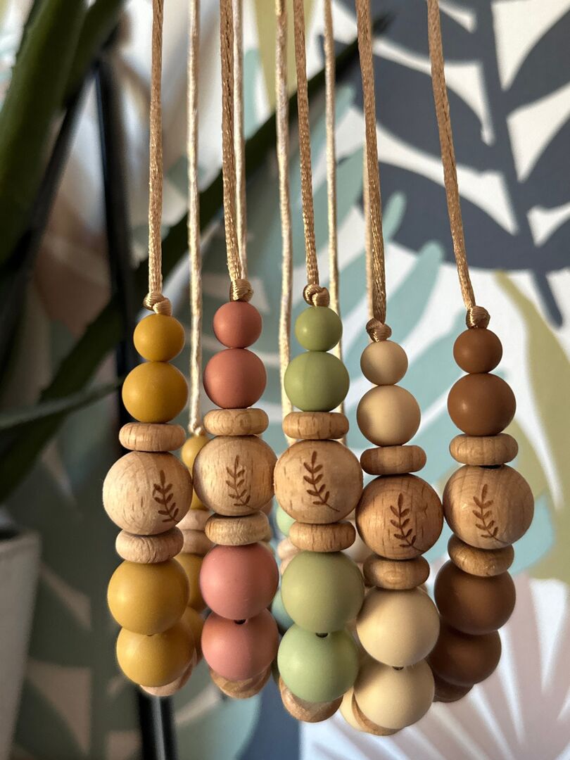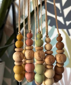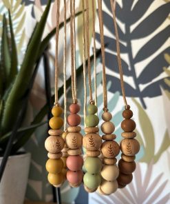 Collier d’allaitement ou de portage silicone et bois ‘Laurier’ – Marron clair