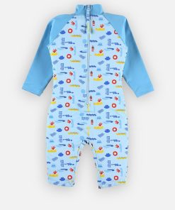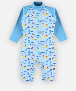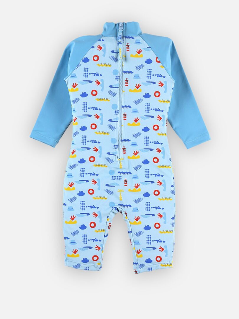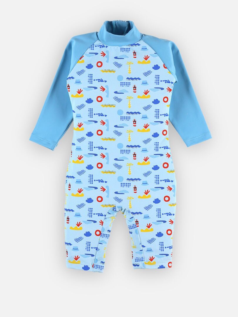 La combinaison protection UV bleu clair à imprimés festivals protège votre enfant des rayons UVA et UVB. Votre enfant est prêt à partir en quête d’aventures aquatiques ! Anti-UV: il/elle est doté/dotée d’un indice de protection UPF50+ Couvrant: il/elle protège la peau sensible des enfants Conçu/Conçue en collaboration avec des dermatologues Attention: Les parties du corps découvertes doivent être protégées par un produit solaire à haut indice, des lunettes et un chapeau. La protection peut diminuer avec le temps s’ils sont distendus ou mouillés. Composition : 85% Polyamide 15% elasthanne