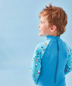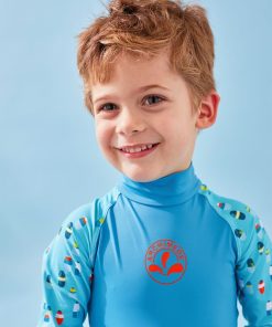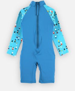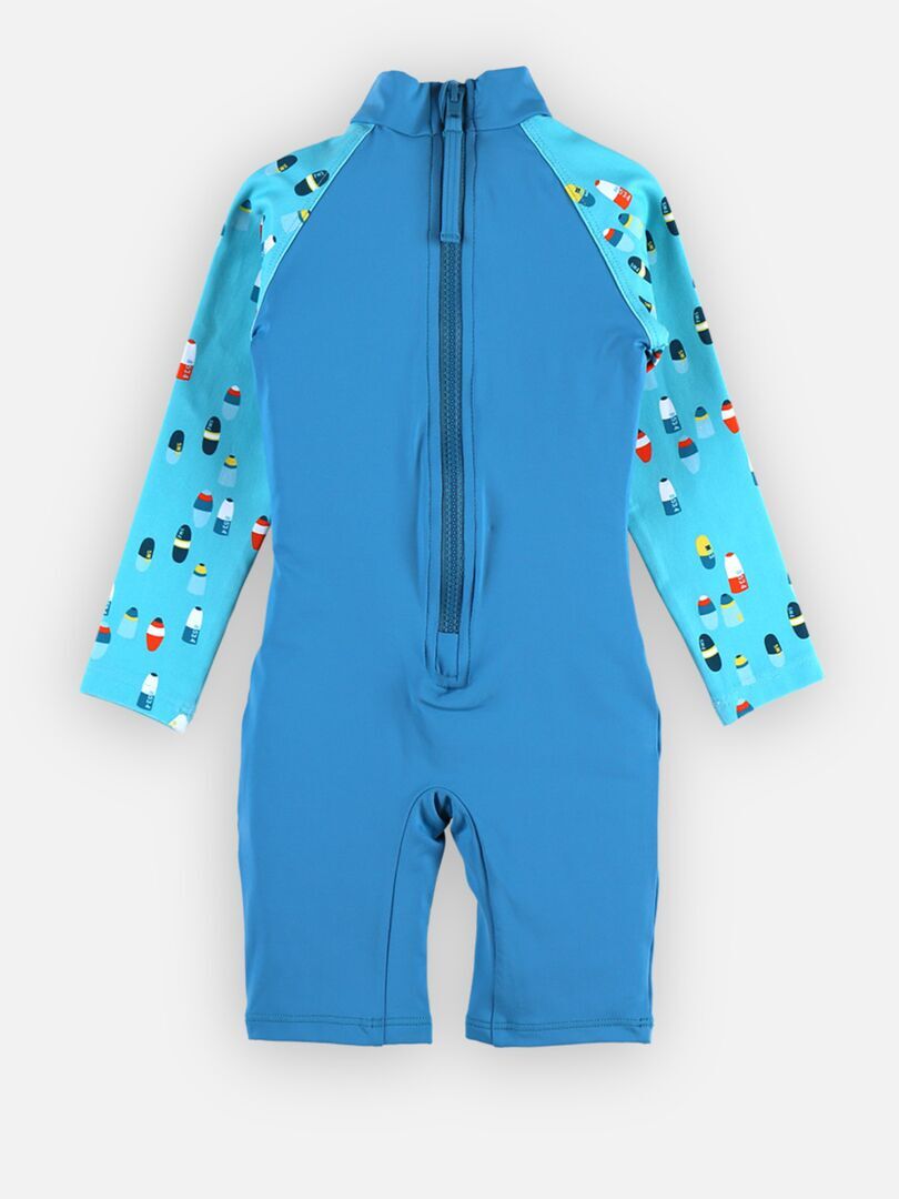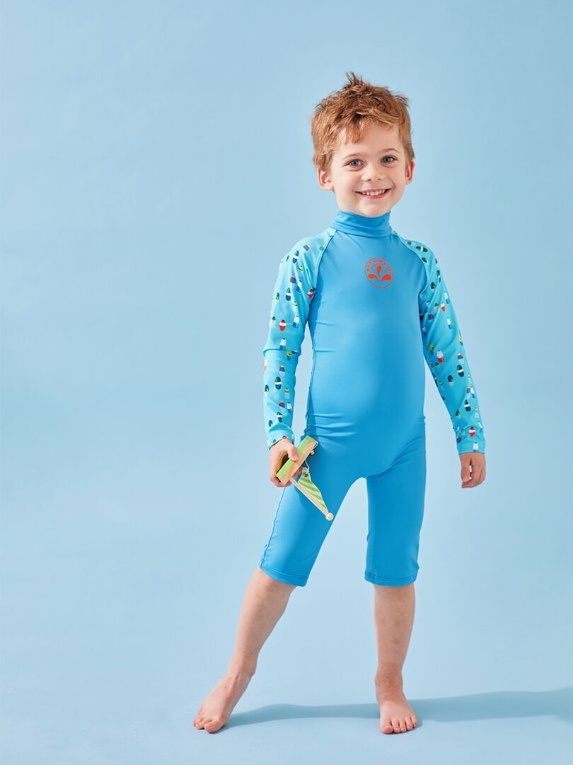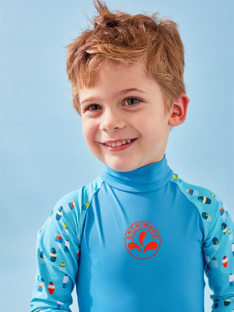 La combinaison protection UV turquoise à manches longues imprimées protège votre enfant des rayons UVA et UVB. Votre enfant est prêt à partir en quête d’aventures aquatiques ! Anti-UV: il/elle est doté/dotée d’un indice de protection UPF50+ Couvrant: il/elle protège la peau sensible des enfants Conçu/Conçue en collaboration avec des dermatologues Attention: Les parties du corps découvertes doivent être protégées par un produit solaire à haut indice, des lunettes et un chapeau. La protection peut diminuer avec le temps s’ils sont distendus ou mouillés. Composition : 85% Polyamide 15% elasthanne