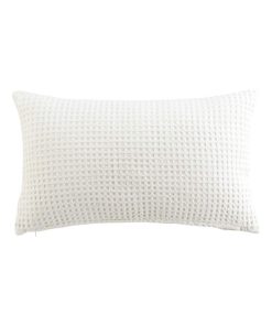 Coussin dehoussable Collection Gaufrettes Apportez un style chic et sobre à la décoration de votre interieur avec ce coussin Dimensions : largeur 30 x longueur 50 cm Matière : Housse en coton 270 gr/m² Finition : dehoussable effet nid d’abeilles Retrouvez des plaids dans la meme collection ainsi que de nombreux articles pour la decoration de votre interieur. Les accessoires présents sur le visuel ne sont pas vendus avec le coussin.