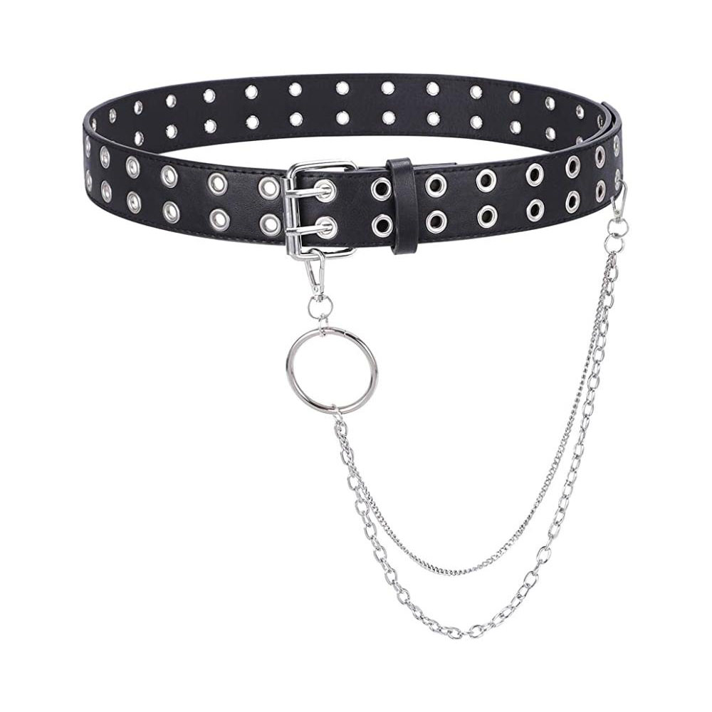 - Versatile Belt For Women Men — This punk waist belt for jeans / pants / dresses is functional enough to be a necessary for your daily wear, and this leather grommet belt can also be a cool gift for teenager girls and boys to be their gorgeous waist accessories for casual / uniformed outfit or goth cosplay parties.