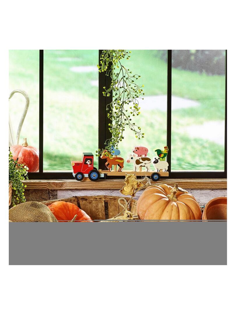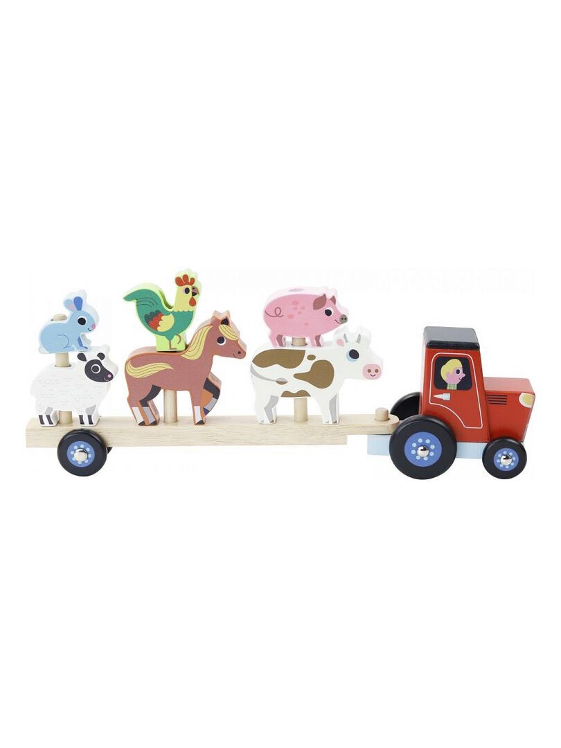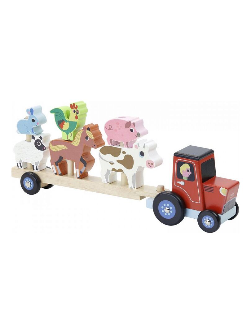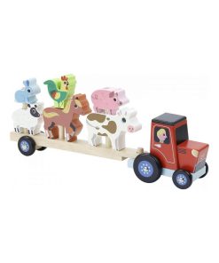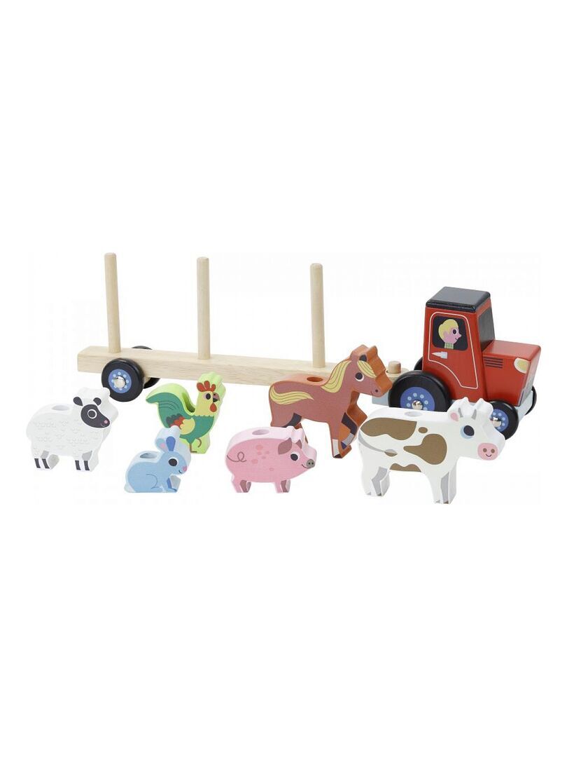 De jolis animaux en bois à empiler sur la remorque du tracteur. Illustré par Ingela P.Arrhenius. À partir de 2 ans. A partir de 2 ans