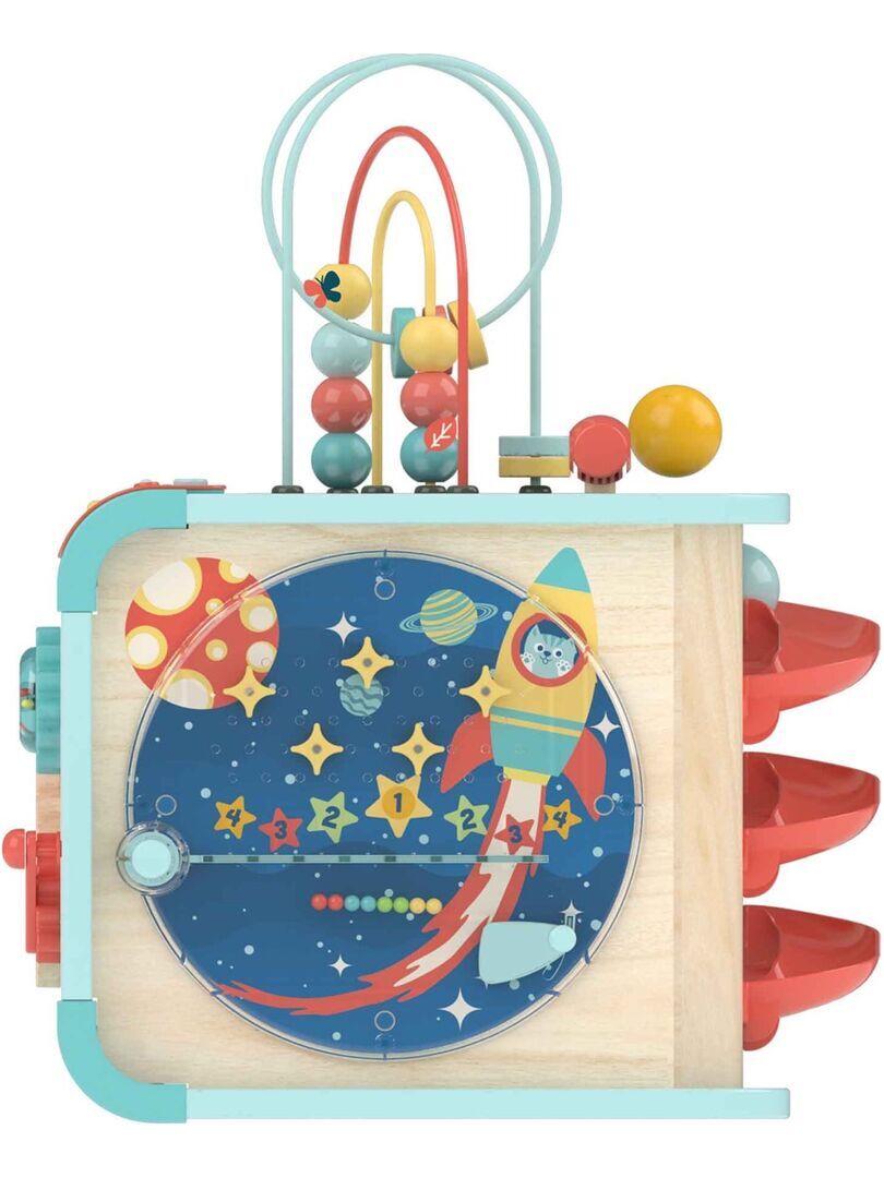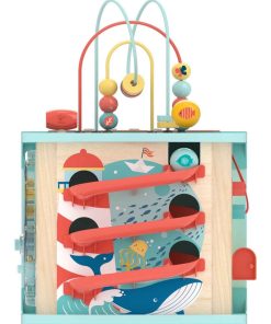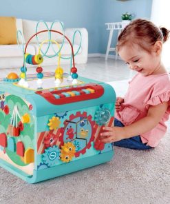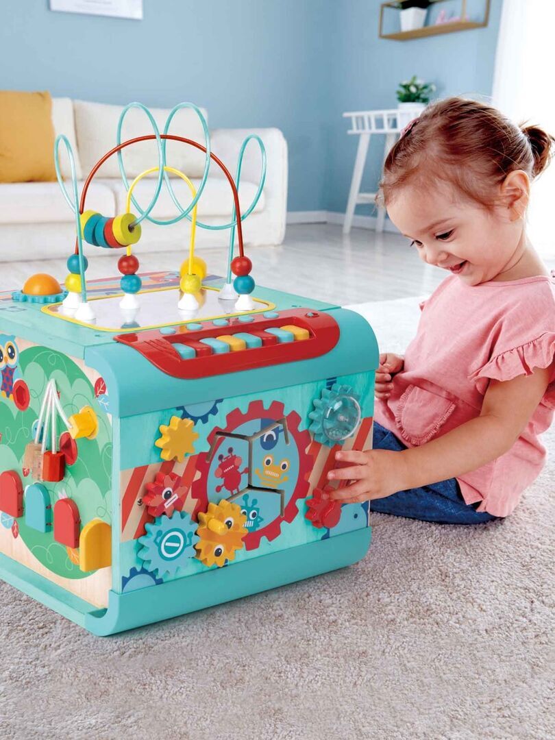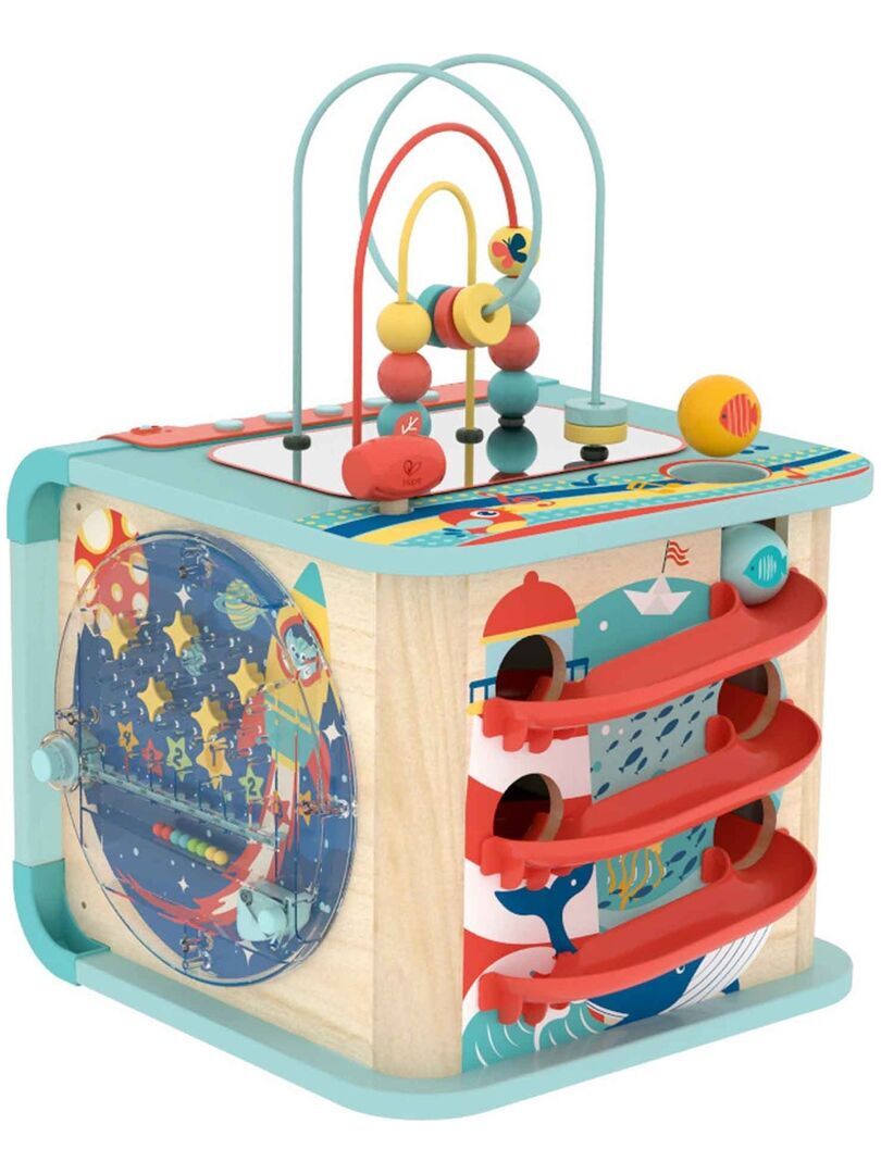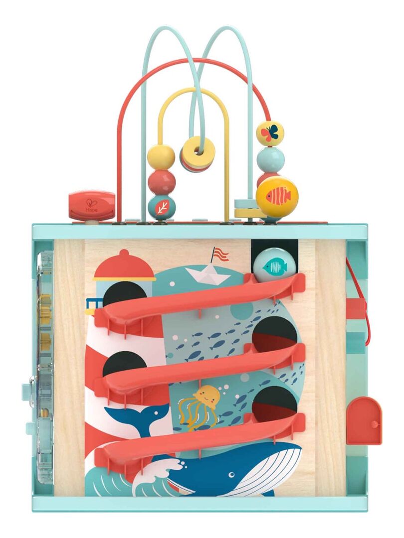 Grand cube d’activités interactif 5-en-1 en bois dès 12 mois de Hape – Bleu