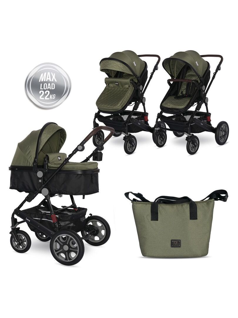 LORELLI – Poussette combinée trio 3 en 1 – siège auto 0m – nacelle – dès la naissance – jusqu’à 15kg – Vert