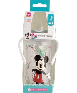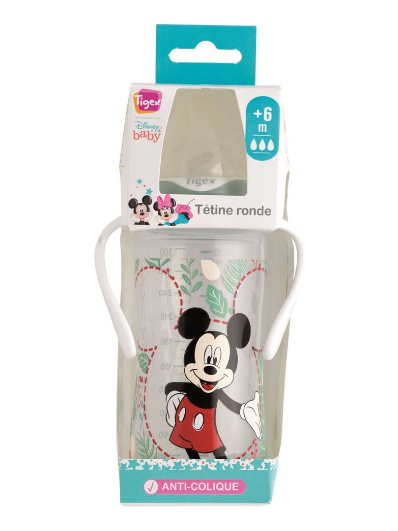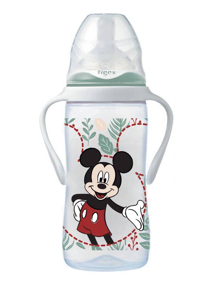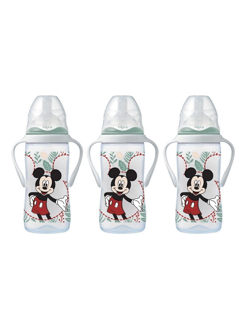 Lot de 3 biberons 3 vitesses col large poignées 300ml +6M lait infantile Mickey TIGEX.