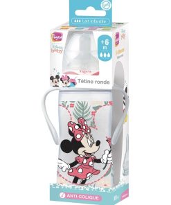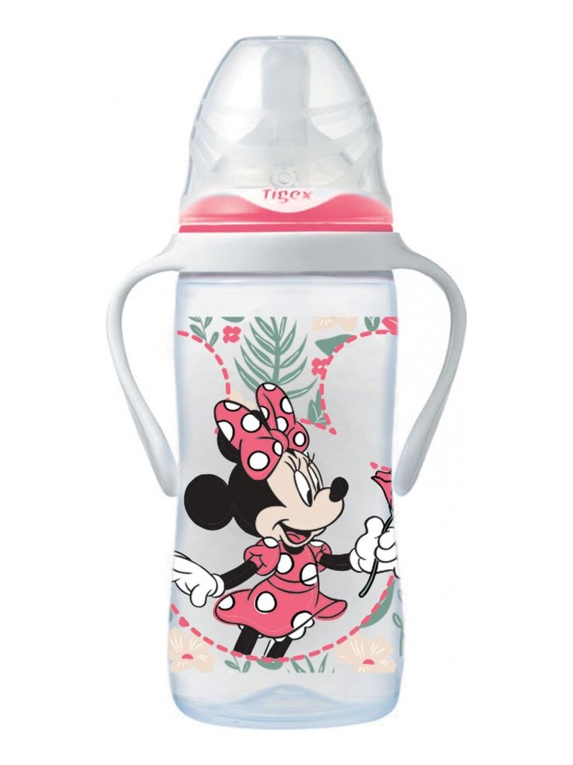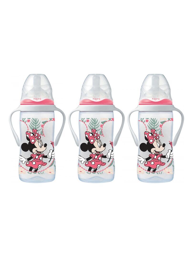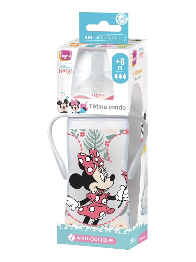 Lot de 3 biberons 3 vitesses col large poignées 300ml +6M lait infantile Minnie TIGEX.