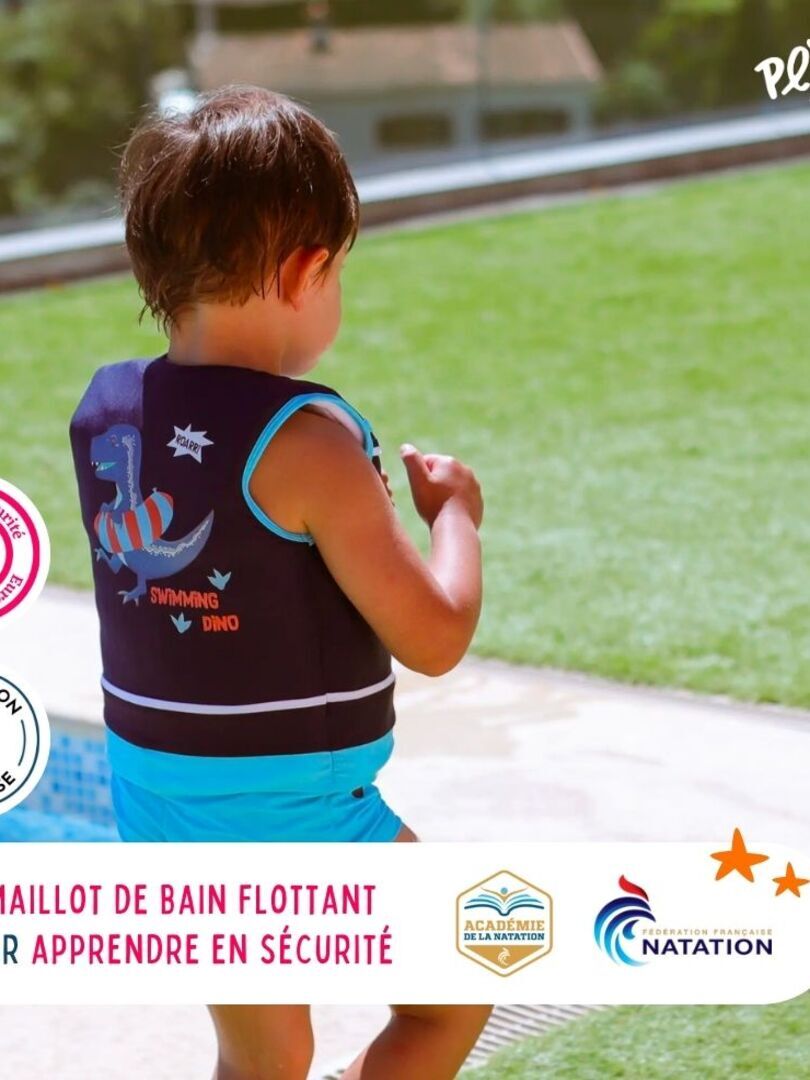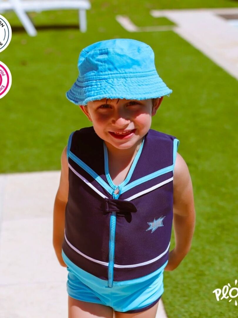 Gilet de natation flottant pour enfant L’apprentissage de la natation de votre enfant se fera en toute sécurité avec ce maillot de bain flottant Plouf mêlant design et technique ! Quelle que soit la chute de l’enfant dans l’eau, votre garçon remontera automatiquement à la surface en position horizontale. À l’inverse des maillots de bain flotteurs classiques qui permettent de maintenir l’enfant hors de l’eau mais à la verticale (effet « bouchon »). ÉVEIL ET ÉPANOUISSEMENT AQUATIQUE : Ce maillot flotteur est 2 en 1 ! Ce Maillot de bain équipé de bouées flotte, même déchiré, et permet à votre enfant d’aborder les prémices de la natation en toute confiance ! La marque française Plouf est fournisseur Ifficiel de la Fédération Française de la natation et Partenaire de l’Académie de la Natation. SÉCURITÉ AVANT TOUT : Ce maillot de bain fille permettra de remonter automatiquement à la surface, en position horizontale et en sortant la tête hors de l’eau et, sans risque de basculement. Le plus ? votre enfant ne peut le retirer seul ! PRATIQUE ET ERGONOMIQUE : Ce gilet de bain accompagnera votre enfant dans son apprentissage ! Libre de ses mouvements, aucun accessoire ne viendra le gêner. Grâce à sa glissière à l’avant, il suffit juste de l’enfiler et de le zipper ! INNOVATION CERTIFIÉE : Fibre révolutionnaire composée de 97% de micro bulles d’air répartie dans tout le haut du corps. Véritable innovation française, une norme européenne a spécialement été créée en 2000 au lancement de cette invention ! PLOUF! : Notre promesse est de permettre aux enfants de s’amuser, tout en gardant leur insouciance et en préservant leur sécurité. Grâce à la technologie FibreAir©, la qualité et le style reste une priorité pour nos enfants ! Les équivalences: Taille 1 : couvre de 13 à 15 kg Taille 2 : couvre de 15 à 17 kg Taille 3 : couvre de 17 à 19kg Taille 4 : couvre de 19 à 21 kg Taille5 : couvre de 21 à 24 kg