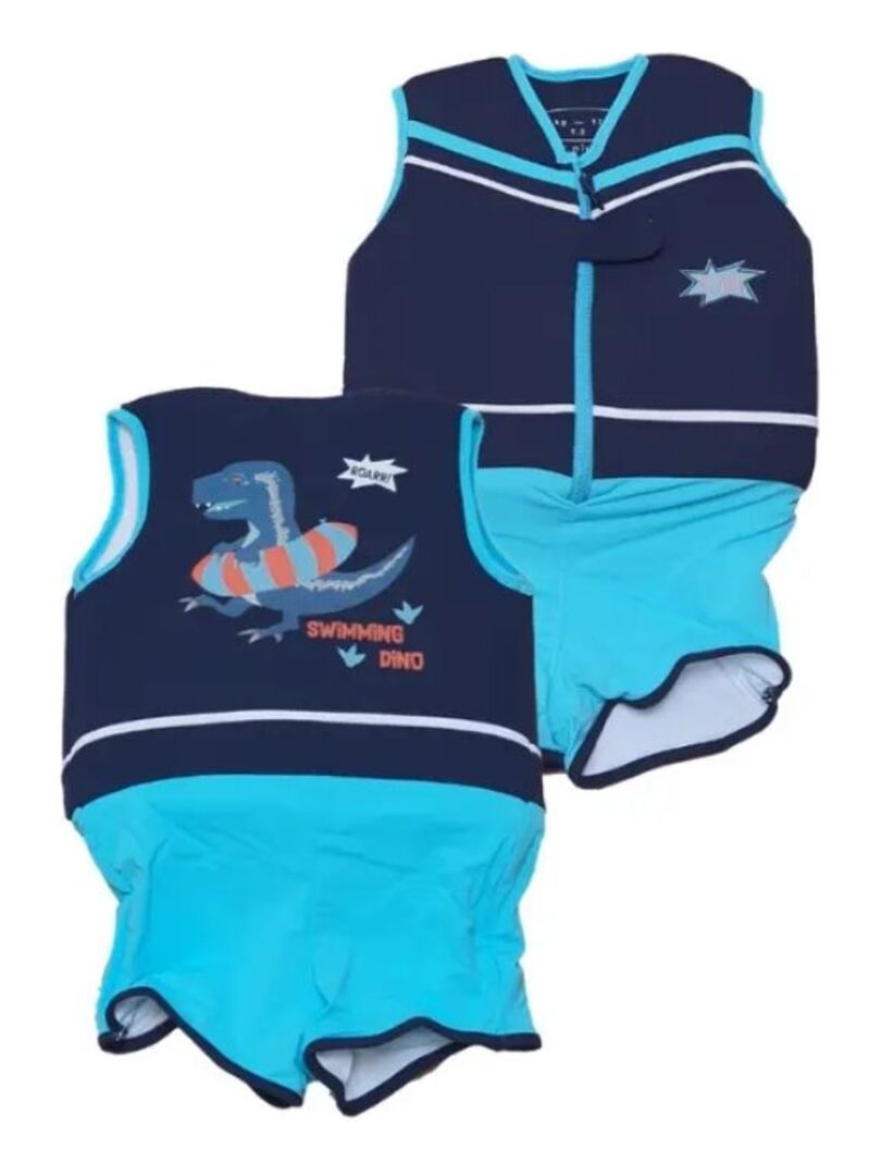 Maillot de Bain Dino Enfant avec Flotteurs – Accessoire de Natation Garçon – Bleu