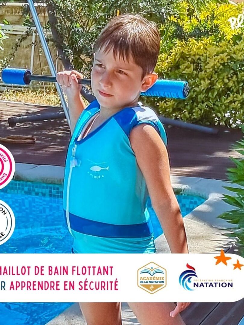 Gilet de natation flottant pour enfant L’apprentissage de la natation de votre enfant se fera en toute sécurité avec ce maillot de bain flottant Plouf mêlant design et technique ! Quelle que soit la chute de l’enfant dans l’eau, votre garçon remontera automatiquement à la surface en position horizontale. À l’inverse des maillots de bain flotteurs classiques qui permettent de maintenir l’enfant hors de l’eau mais à la verticale (effet « bouchon »). ÉVEIL ET ÉPANOUISSEMENT AQUATIQUE : Ce maillot flotteur est 2 en 1 ! Ce Maillot de bain équipé de bouées flotte, même déchiré, et permet à votre enfant d’aborder les prémices de la natation en toute confiance ! La marque française Plouf est fournisseur Ifficiel de la Fédération Française de la natation et Partenaire de l’Académie de la Natation. SÉCURITÉ AVANT TOUT : Ce maillot de bain fille permettra de remonter automatiquement à la surface, en position horizontale et en sortant la tête hors de l’eau et, sans risque de basculement. Le plus ? votre enfant ne peut le retirer seul ! PRATIQUE ET ERGONOMIQUE : Ce gilet de bain accompagnera votre enfant dans son apprentissage ! Libre de ses mouvements, aucun accessoire ne viendra le gêner. Grâce à sa glissière à l’avant, il suffit juste de l’enfiler et de le zipper ! INNOVATION CERTIFIÉE : Fibre révolutionnaire composée de 97% de micro bulles d’air répartie dans tout le haut du corps. Véritable innovation française, une norme européenne a spécialement été créée en 2000 au lancement de cette invention ! PLOUF! : Notre promesse est de permettre aux enfants de s’amuser, tout en gardant leur insouciance et en préservant leur sécurité. Grâce à la technologie FibreAir©, la qualité et le style reste une priorité pour nos enfants !