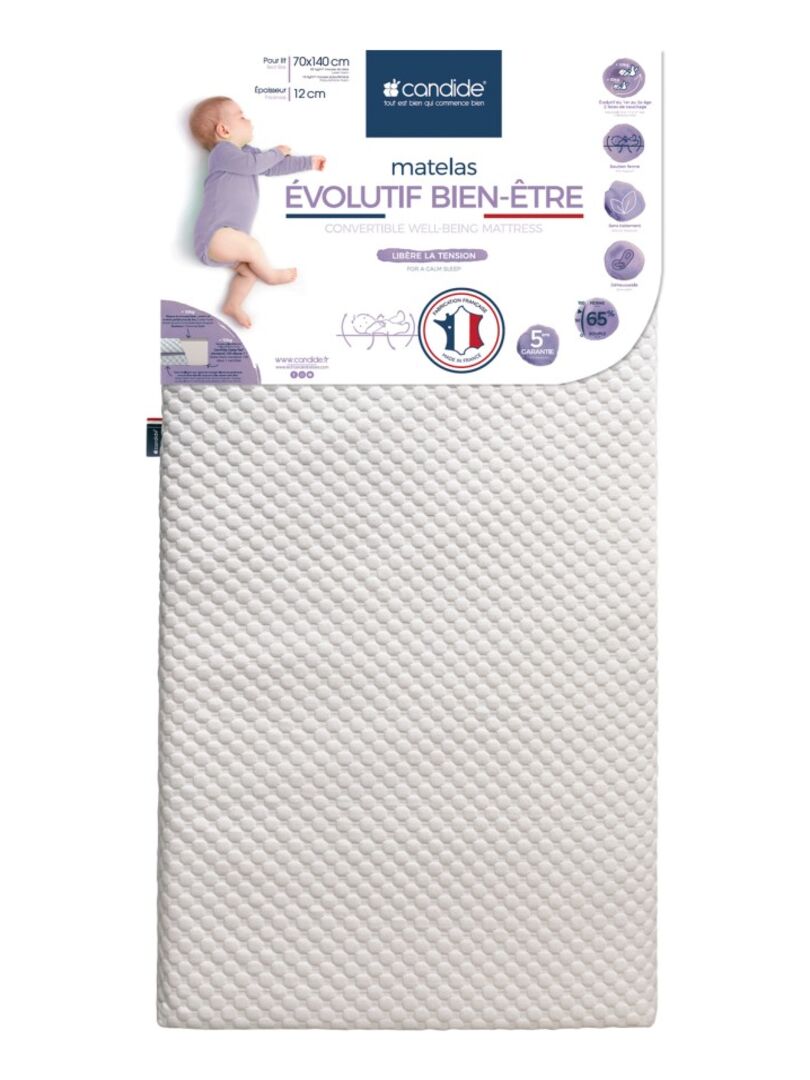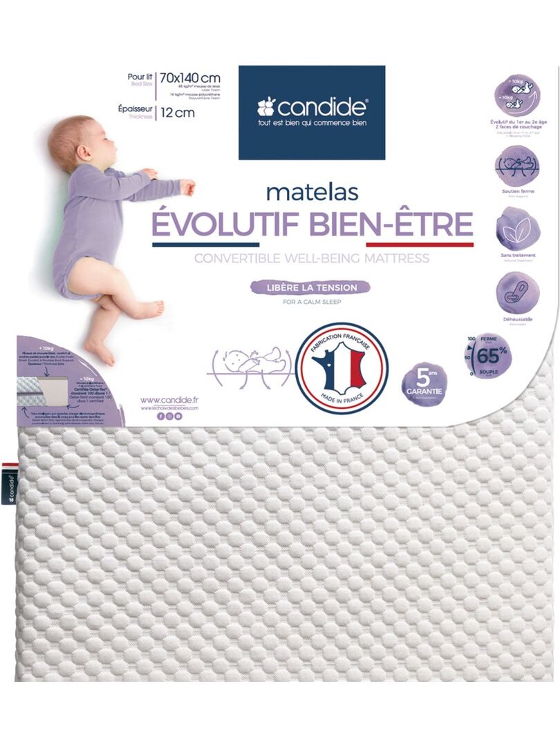 Matelas bébé Évolutif bien-être déhoussable – 70cm x 140cm x 12cm – Blanc