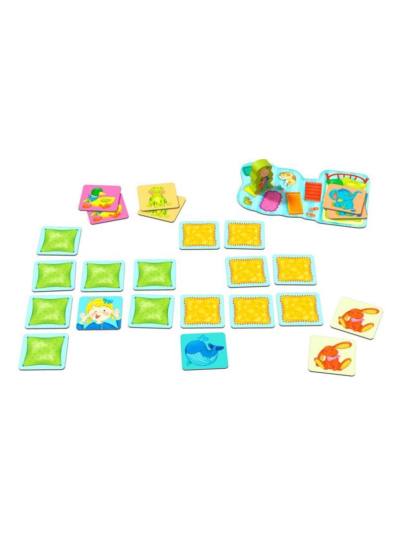 Plein d’animaux en peluche attendent impatiemment qu’on les découvre, et de préférence par paire ! Mais où se cachent-ils ? C’est aux joueurs de les découvrir ! Tuile après tuile, ils s’amusent de plus en plus tout en entrainant leur mémoire. Un enfant remportera la partie s’il a la pile de tuiles la plus haute. Une variante coopérative permet à tous les joueurs de gagner ensemble en plaçant les animaux en peluche dans le lit avant que Maxi ne se couche.- Avec une figurine en bois toute mignonne – Le plaisir du jeu de mémoire en deux variantes : classique ou coopérative. Thème ludique adapté aux enfants. Contenu: 1 plateau de jeu << chambre d'enfant >>, 1 figurine Maxi, 24 tuiles mémo. Nombre de joueurs : 4. Age minimum requis : 2 ans. Durée d’une partie : 5 min Age minimum : 24 mois