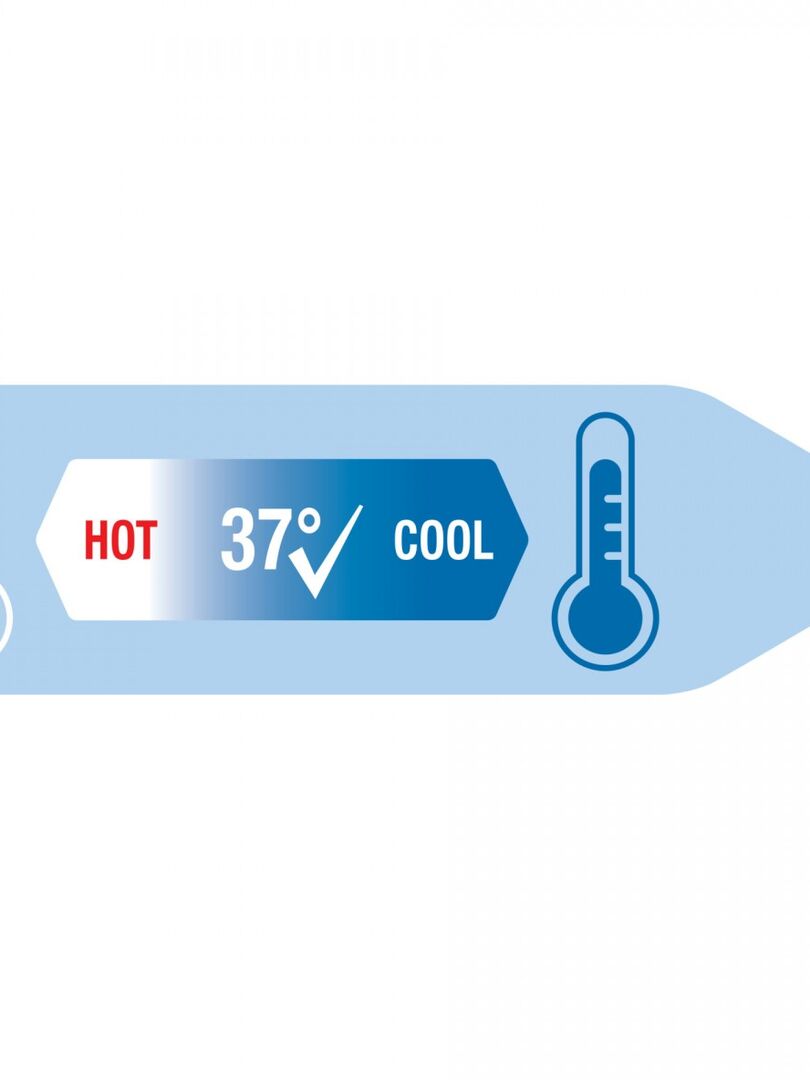 Si le contenu est trop chaud, l’indicateur bleu passe au blanc. Il est recommandé de nourrir bébé à une température proche du corps (37 C = ton bleu). Toujours vérifier à nouveau la température avant de donner le biberon.