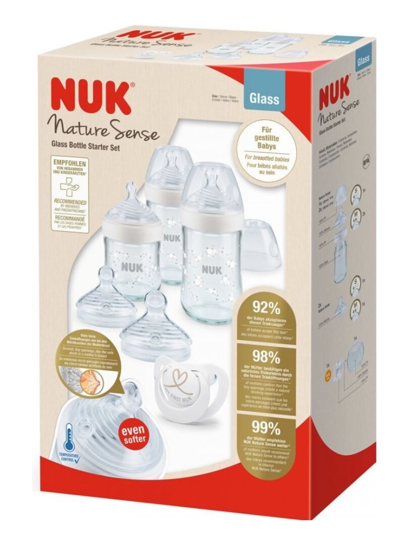 Petit set 3 biberons Nature Sense Verre NUK avec indicateur de température.