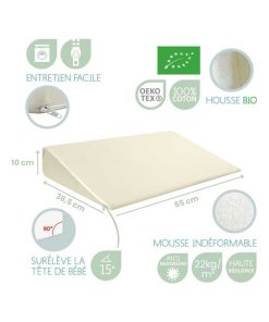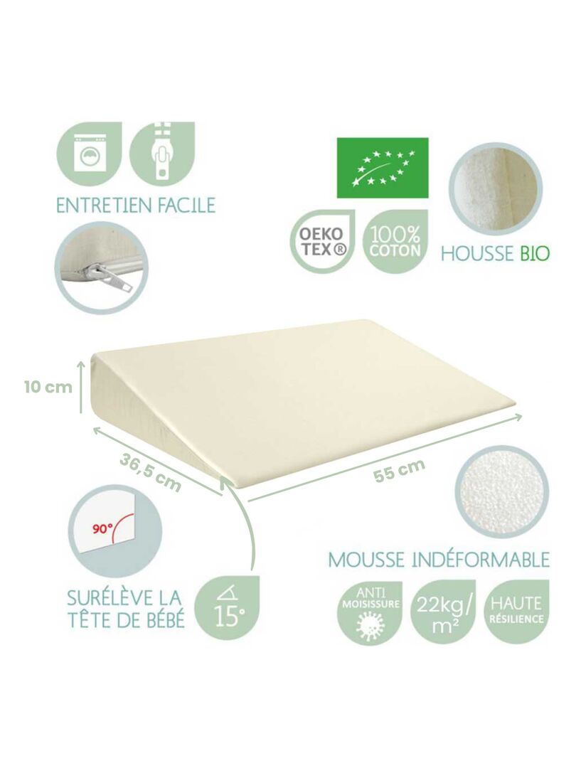 ✂️ TAILLE STANDARD : Plan incliné pour lit bébé 60x120cm. Housse 100% Coton BIO issu de l’agriculture biologique, certifié Oeko-Tex Standard 100. Mousse confortable, indéformable et anti-moisissure. Nos plans inclinés sont déhoussables, la housse en coton bio permet de respecter au maximum la peau de bébé et d’éviter des irritations.