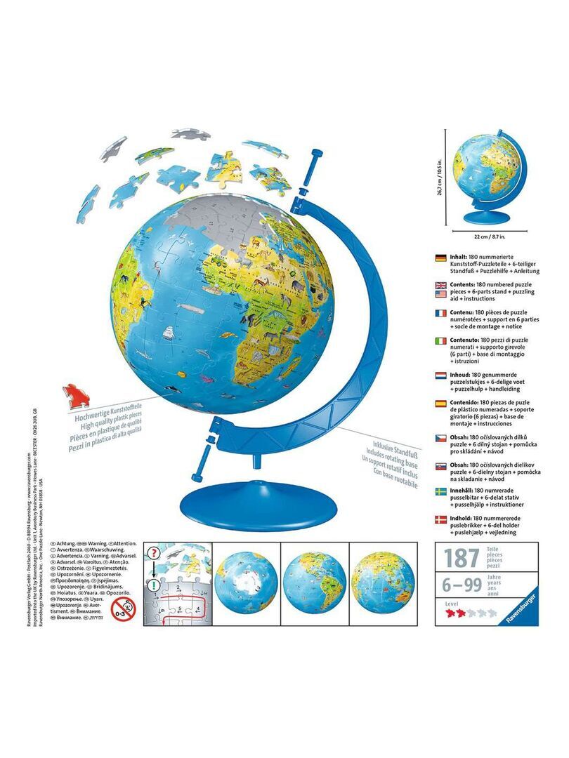Quoi de plus amusant que de découvrir le monde pièce par pièce avec ce puzzle globe ? Grâce à la technologie Easyclick, ses pièces en plastique parfaitement incurvées s’assemblent facilement pour former une sphère solide, le tout sans colle. Chacune des 180 pièces vous emmène dans une petite expédition autour du monde !Un diamètre de 20 cm avec de grandes pièces pour que les enfants à partir de 8 ans puissent le monter facilement. Un support rotatif en plastique permet à l’enfant de faire tourner le puzzle 3D® comme un planisphère. Contenu:180 pièces numérotées, 1 support rotatif, 1 livret donnant des informations sur les différents continents, 1 notice A partir de 6 ans Attention ! Ne convient pas aux enfants de moins de 36 mois (3 ans)