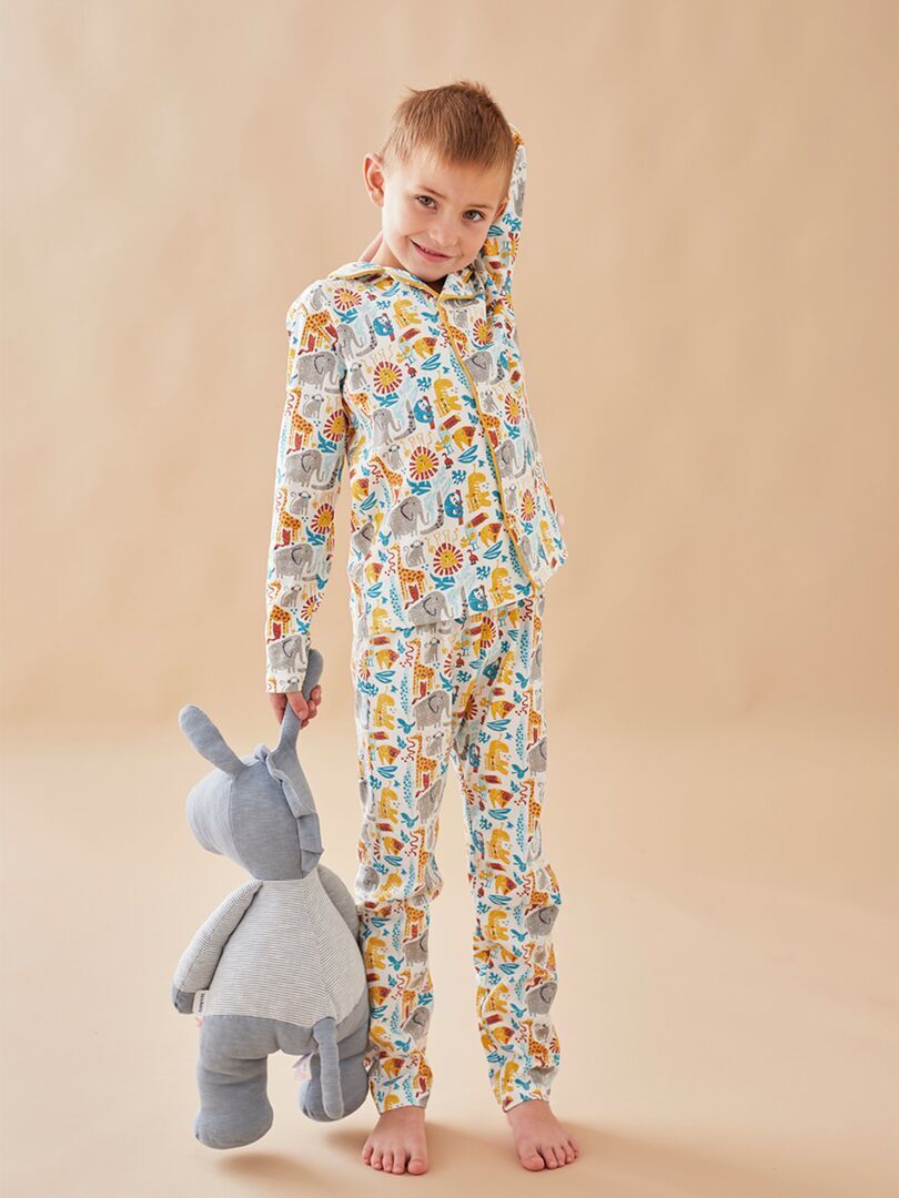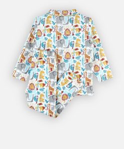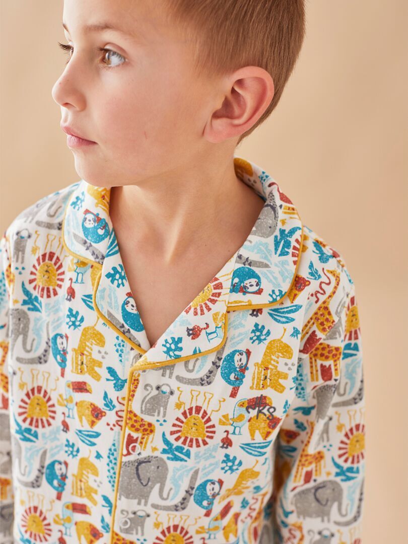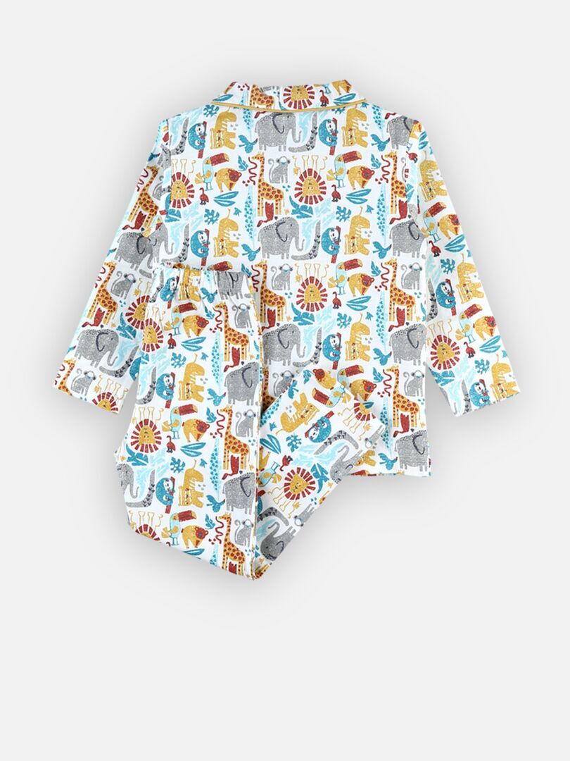 Le pyjama 2 pièces manches longues en jersey multicolore imprimé d’animaux va devenir l’allié douceur des nuits de votre enfant. Le pantalon assorti élastiqué à la taille a été pensé pour le confort maximal de votre enfant durant toute la nuit. On craque pour son jersey tout doux. Composition : 100% Coton