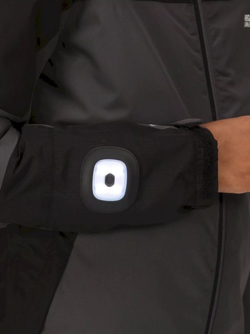 Design/motif: Contrasté, Logo. Niveau de respirabilité (g/m²/24h): 5000. Caractéristiques: Lumière à 3 réglages, Batterie intégrée, Protège fermeture éclair intérieur, Bord réfléchissant, Coutures collées. Matériau: Antidéchirure. Caractéristiques des matériaux: Respirant, Technologie de torche BriteLite, Traitement hydrofuge, Isolant, Isotex 5000 (imperméable 5 000 mm, respirant, coupe-vent et extensible), Séchage rapide, Thermo-guard (garde la chaleur), Imperméable, Coupe-vent. Encolure: À capuche. Ourlets bras: Ajustables. Capuche: Élastiquée, Attachée. Type de poches: 2 poches basses, Zippée. Type de manches: Manches longues. Fermeture: Zippée.