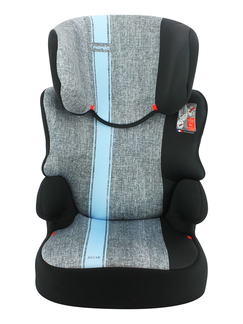 Siège rehausseur enfant avec dossier groupe 2/3 (15-36kg), fabriqué et testé en France et homologué selon la norme ECE R44/04. Le siège enfant BEFIX assure la sécurité des enfants en voiture, il a été récompensé de 4 étoiles aux tests ADAC. Il protège parfaitement l’enfant en cas de choc latéral. C’est un rehausseur qui s’installe uniquement face à la route à l’arrière du véhicule. L’enfant est maintenu avec la ceinture de sécurité 3 points. La têtière du siège est relevable afin de s’adapter au mieux à la morphologie de l’enfant. Il est léger, facile à transporter, et dehoussable et lavable.