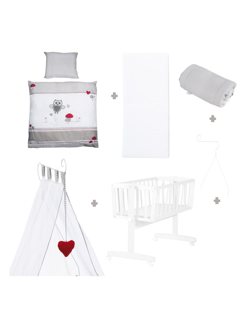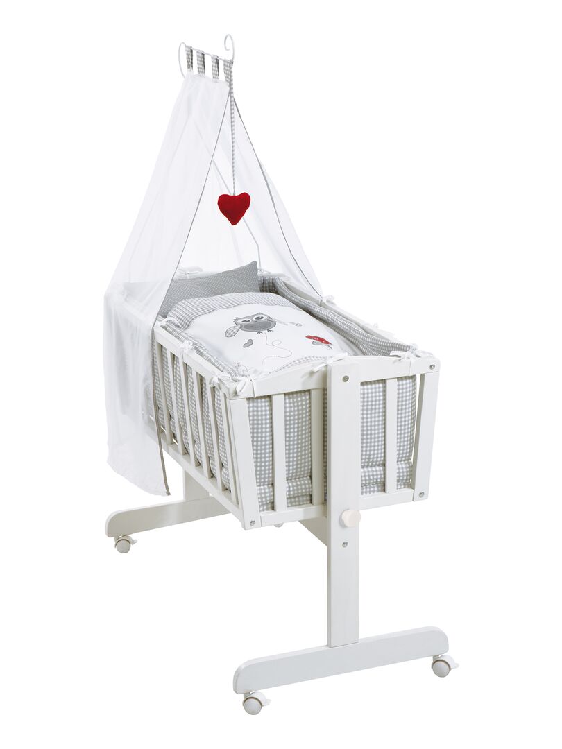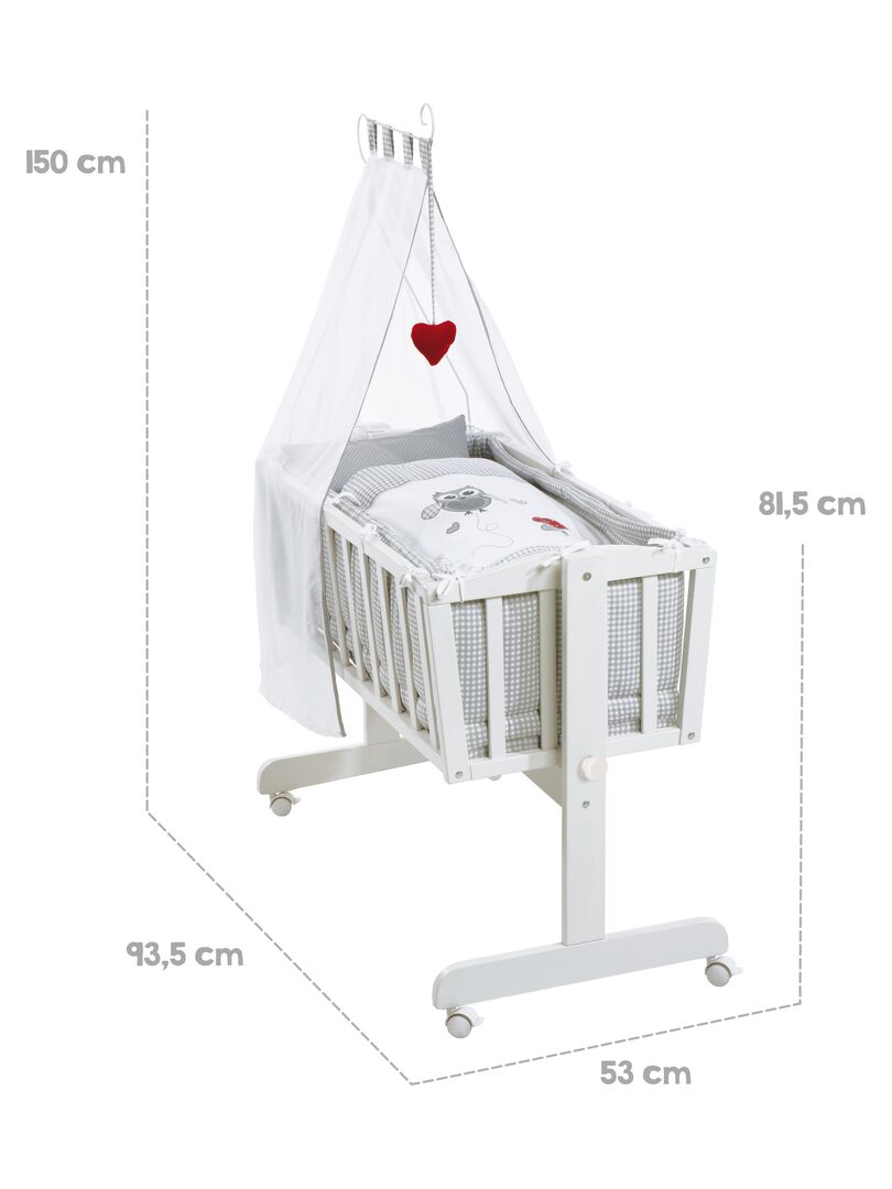 ROBA Berceau Adam & Eule 40×90 cm + Équipement Complet – Bois Laqué Blanc – Blanc