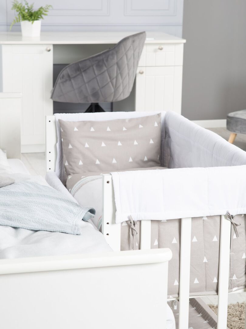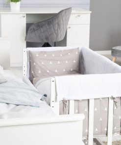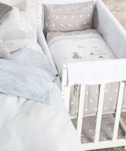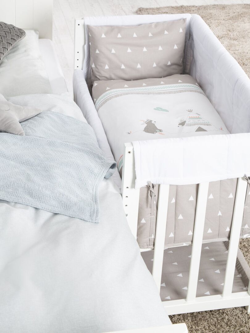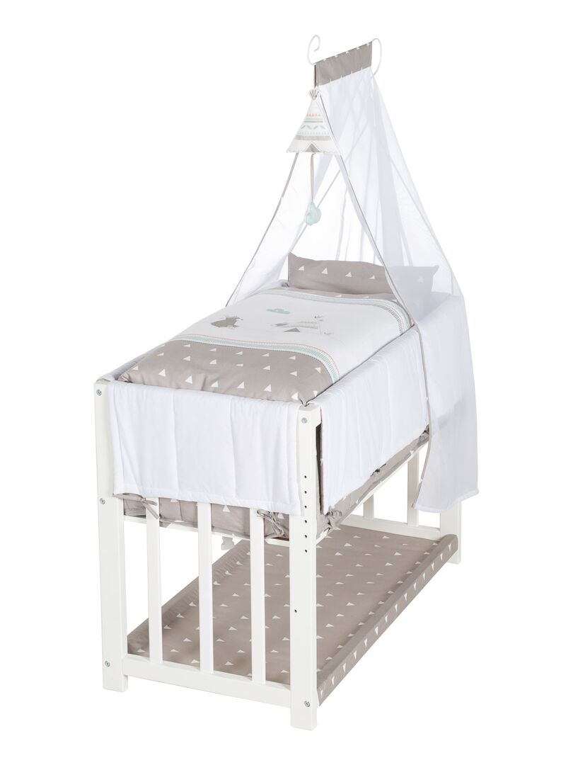 Le berceau cododo roba Babysitter 4 en 1 au joli design « Indibear » est livré avec un matelas en mousse, une literie, un coutil, un nid rembourré, un baldaquin, une barre de baldaquin et des patins pour le bercer. Le lit cododo peut être facilement attaché à n’importe quel lit parental avec les sangles incluses afin qu’il ne puisse pas glisser. Réglable en hauteur à partir de 42,5 cm pour s’adapter à toutes les hauteurs de lit, y compris les lits à sommier tapissier. La literie 2 pièces comprend un oreiller (40 x 35 cm) et une couette (80 x 80 cm). Le rembourrage est composé d’une fibre climatique respirante remplie de 100 % de polyester, la housse est en 100 % de coton. Le berceau et les accessoires sont produits conformément aux dernières normes de sécurité de l’UE (EN 1130:2019). Tous les matériaux utilisés sont certifiés non-toxiques et régulièrement testés. La peinture blanche utilisée est compatible avec les aliments et la peau.
