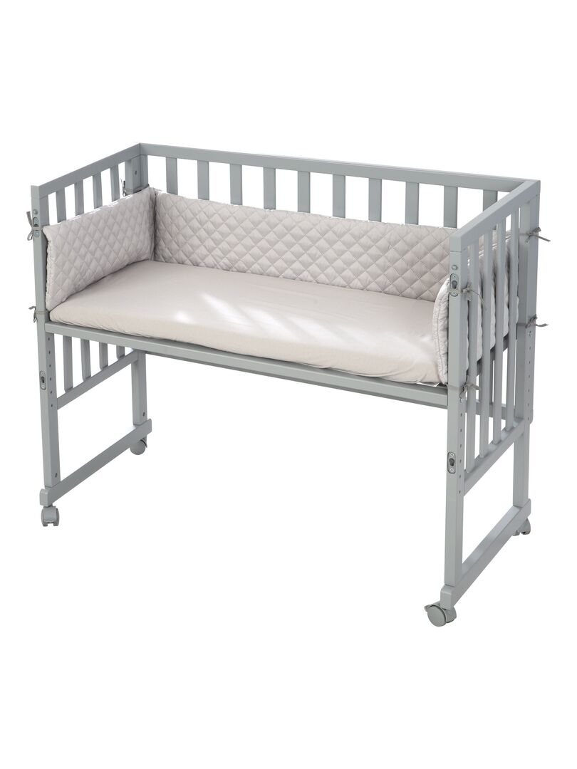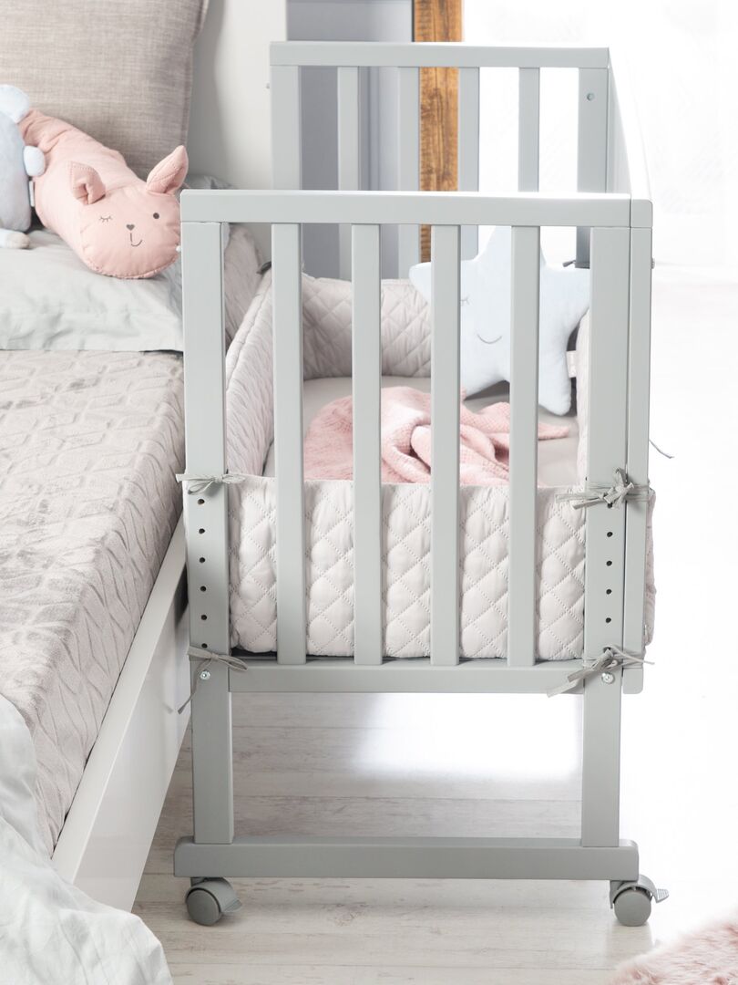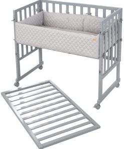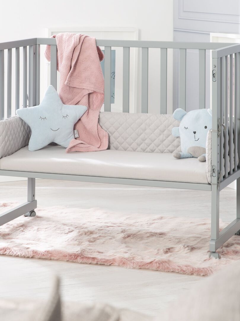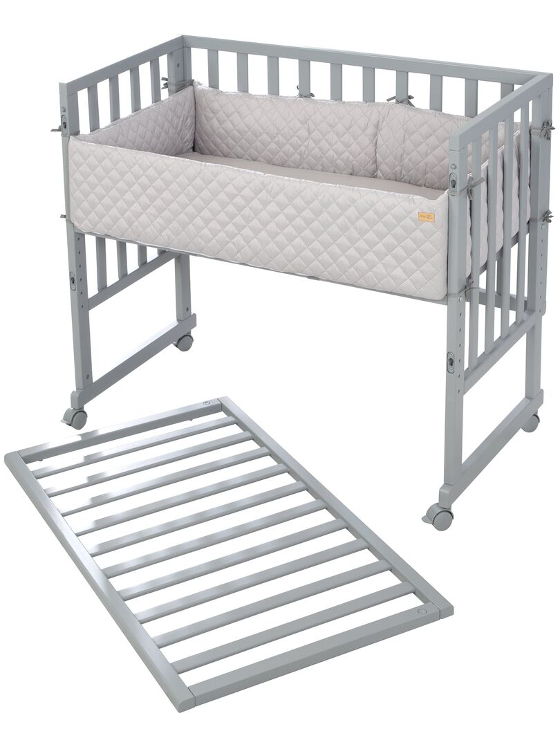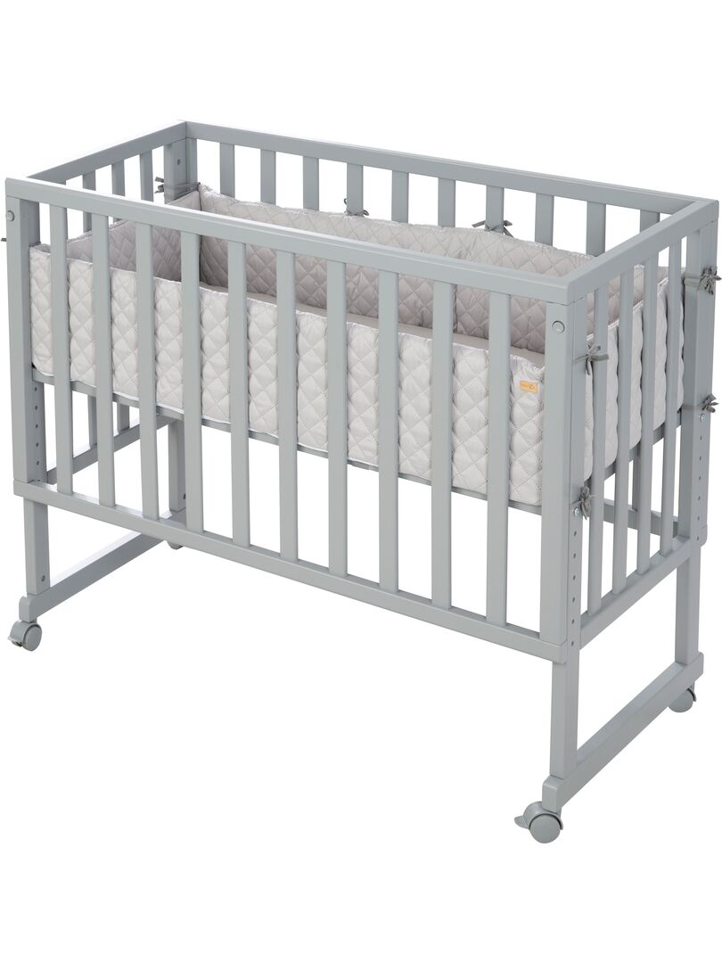 Le berceau cododo roba 3 en 1 de couleur taupe avec barrière est à la fois un lit cododo pour le lit des parents, un nid et un banc pour enfant et offre un environnement de sommeil optimal et sûr. Le lit bébé comprend un matelas de haute qualité de 45 x 90 cm, un nid de style « roba », une barrière de sécurité et 4 roulettes amovibles. Le lit cododo, dont la hauteur peut être réglée de 42,5 cm à n’importe quelle hauteur de lit, y compris les lits à sommier, peut être fixé facilement et en toute sécurité au lit des parents. Le lit d’appoint se transforme en berceau mobile sur simple pression d’un bouton et évolue de la naissance au lit pour les enfants plus âgés. (4 roulettes incluses). Le lit bébé a été développé en allemagne selon les dernières normes de sécurité conformément à la norme EN 1130:2019. Tous les matériaux sont testés contre les substances nocives et certifiés.