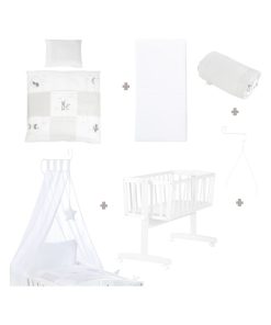ROBA Berceau Fox & Bunny – 40 x 90 cm + Équipement Complet – Bois Laqué Blanc – Blanc