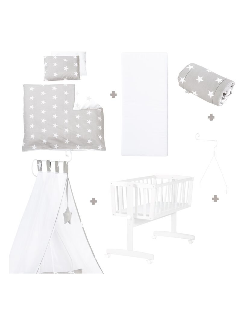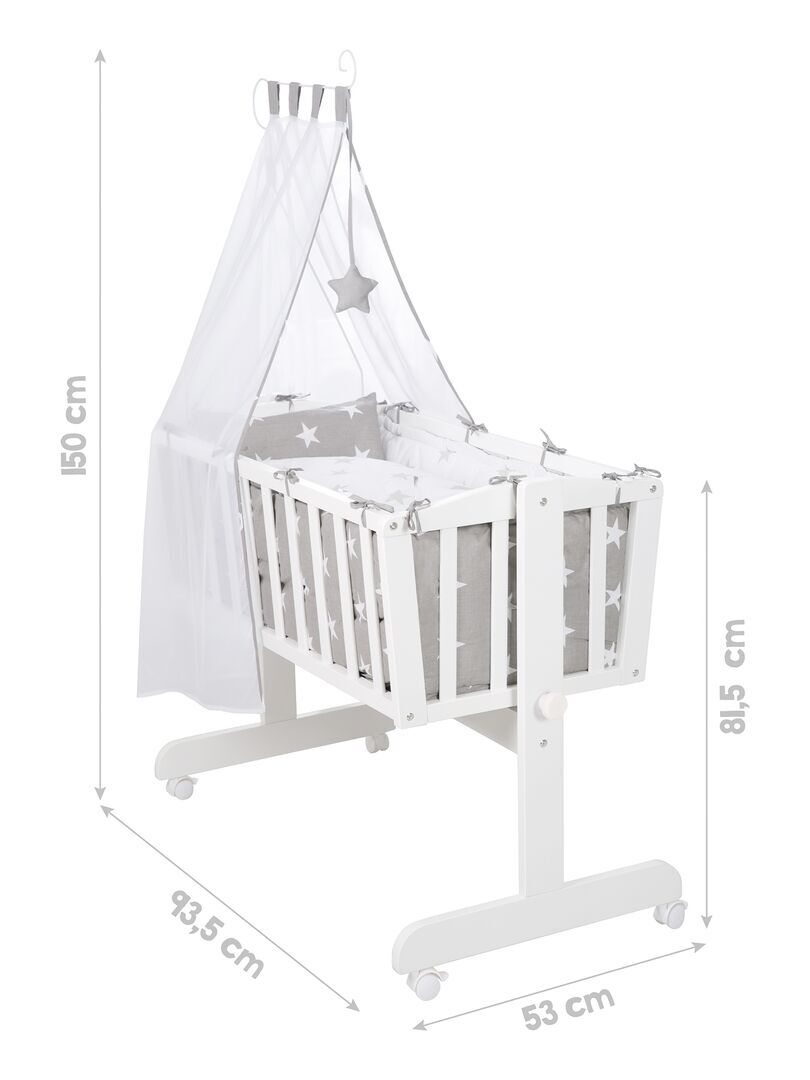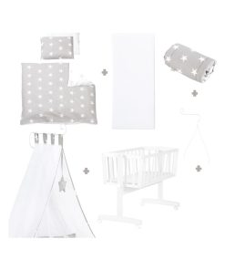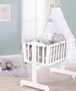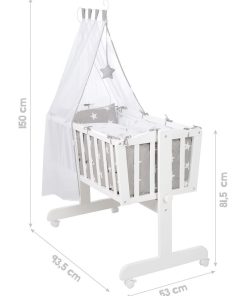 ROBA Berceau Little Stars 40×90 cm + Équipement Complet – Bois Laqué Blanc – Blanc