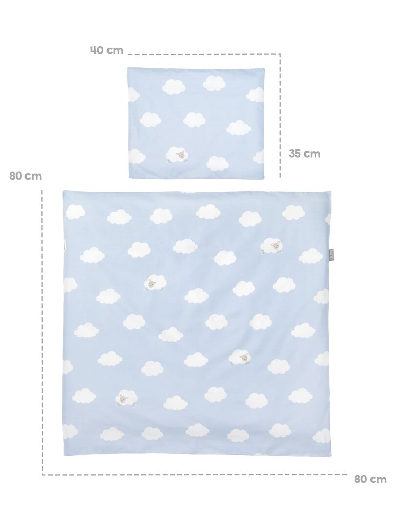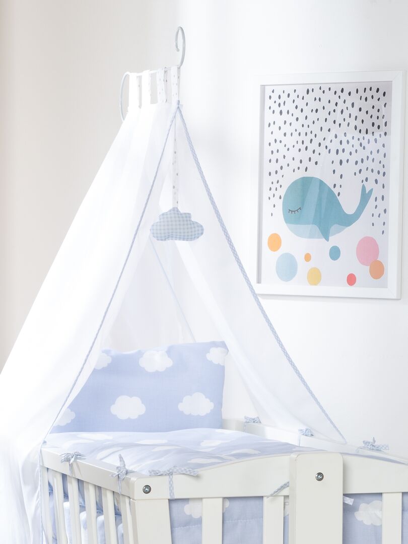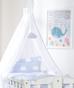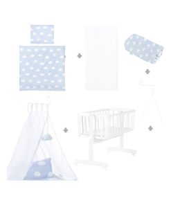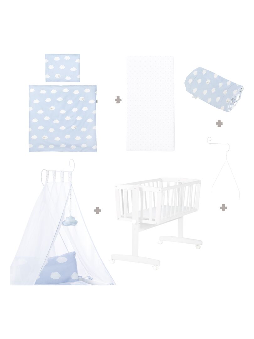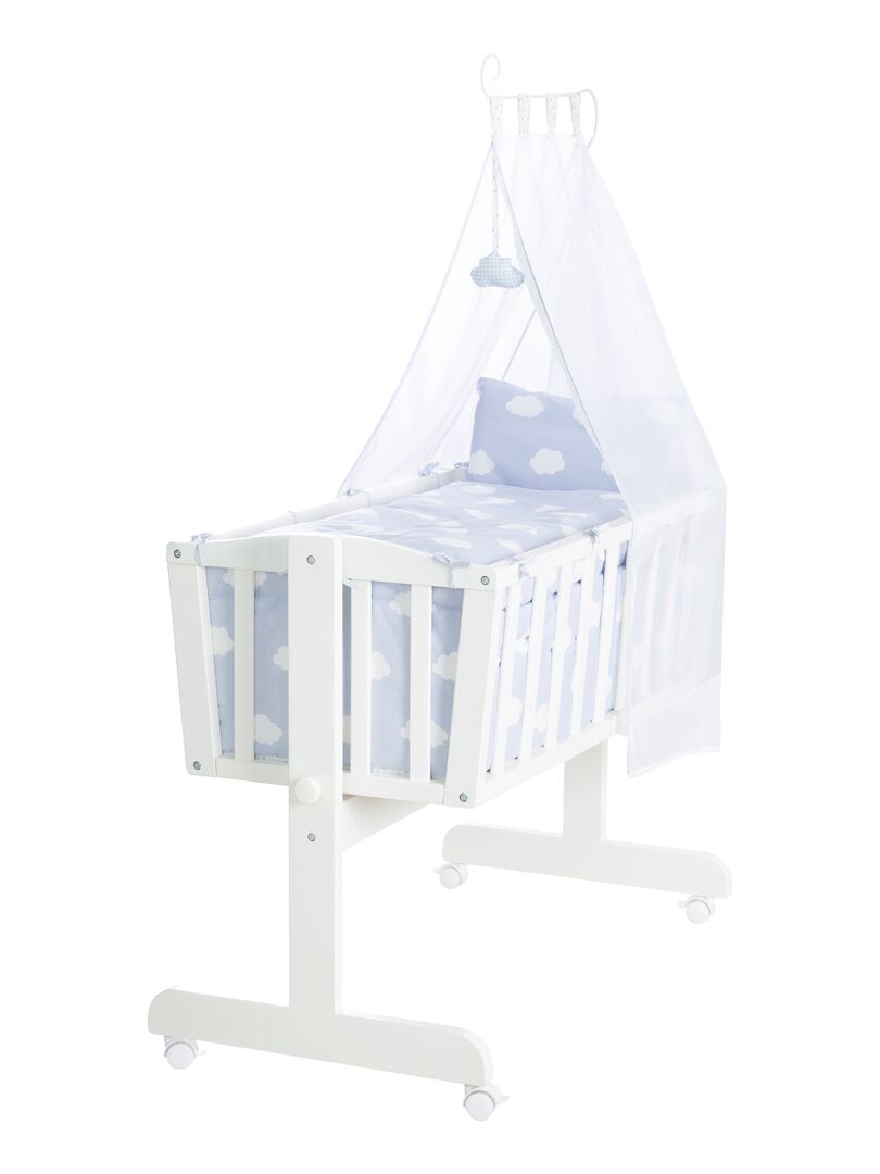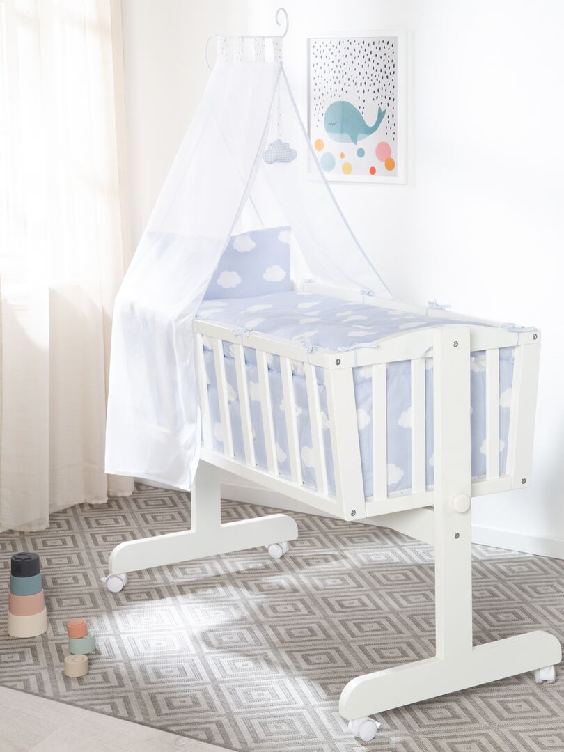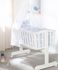 ROBA Berceau Petit Nuage Bleu Clair 40×90 cm + Équipement Complet – Bois Laqué Blanc – Blanc
