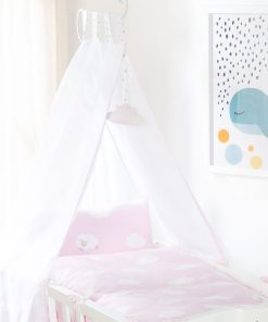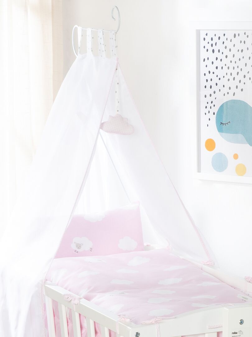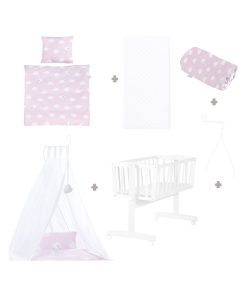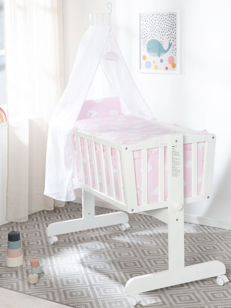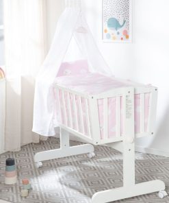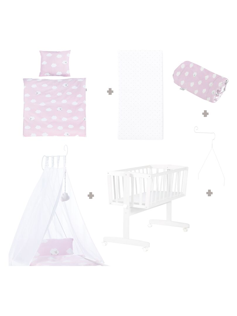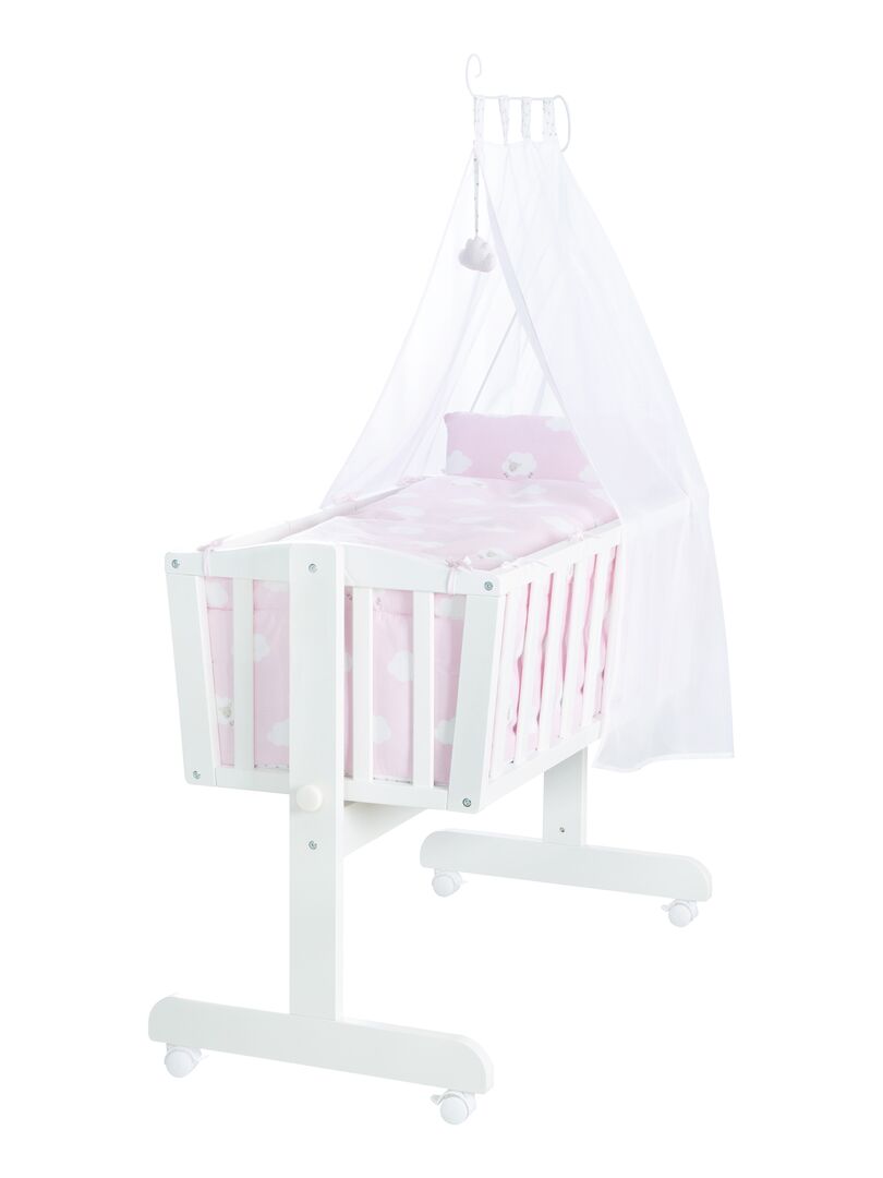 ROBA Berceau Petit Nuage Rose 40×90 cm + Équipement Complet – Bois Laqué Blanc – Blanc